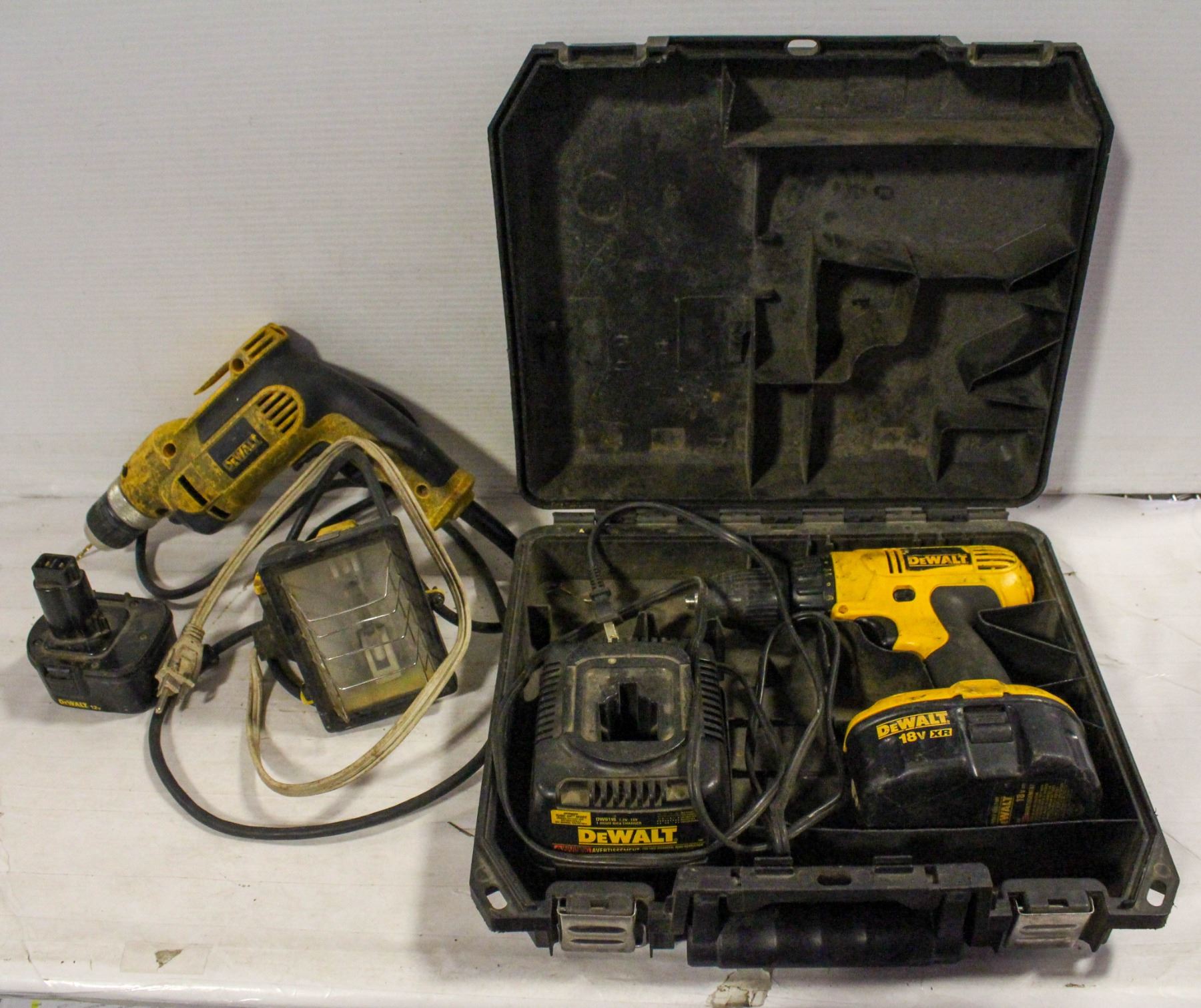 FLAT OF DEWALT DRILLS AND WORK LIGHT