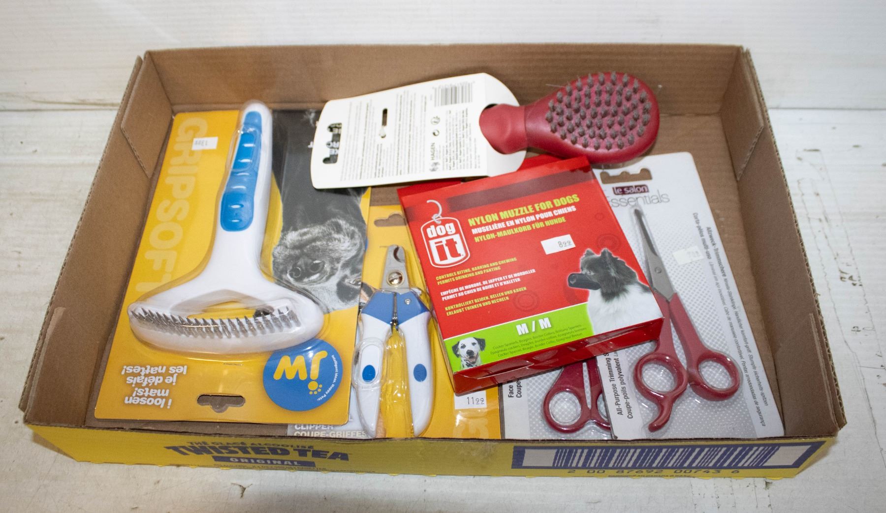 FLAT OF DOG GROOMING SUPPLIES