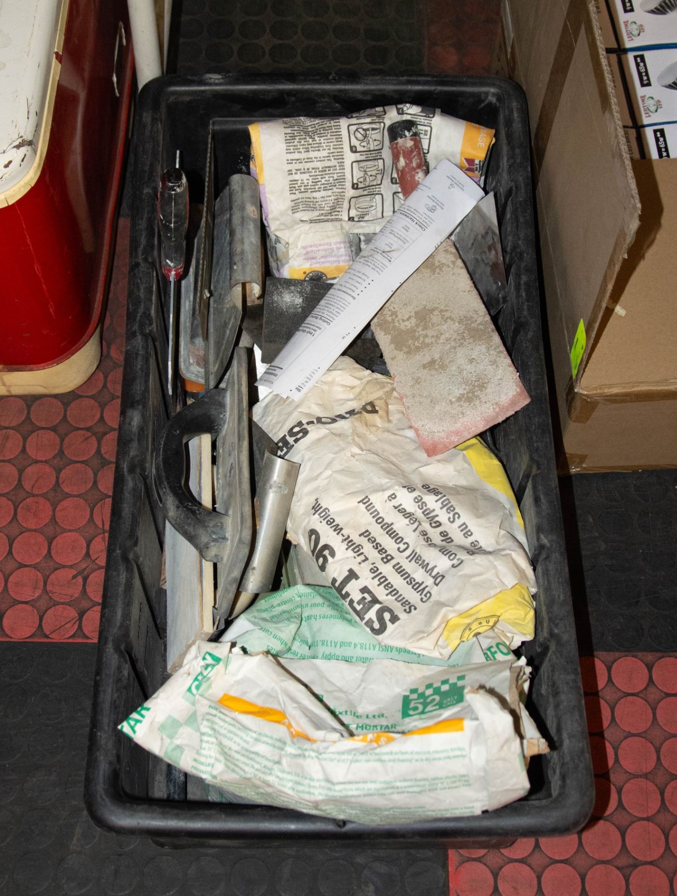 FLAT OF DRYWALL COMPOUND & HAND TOOLS