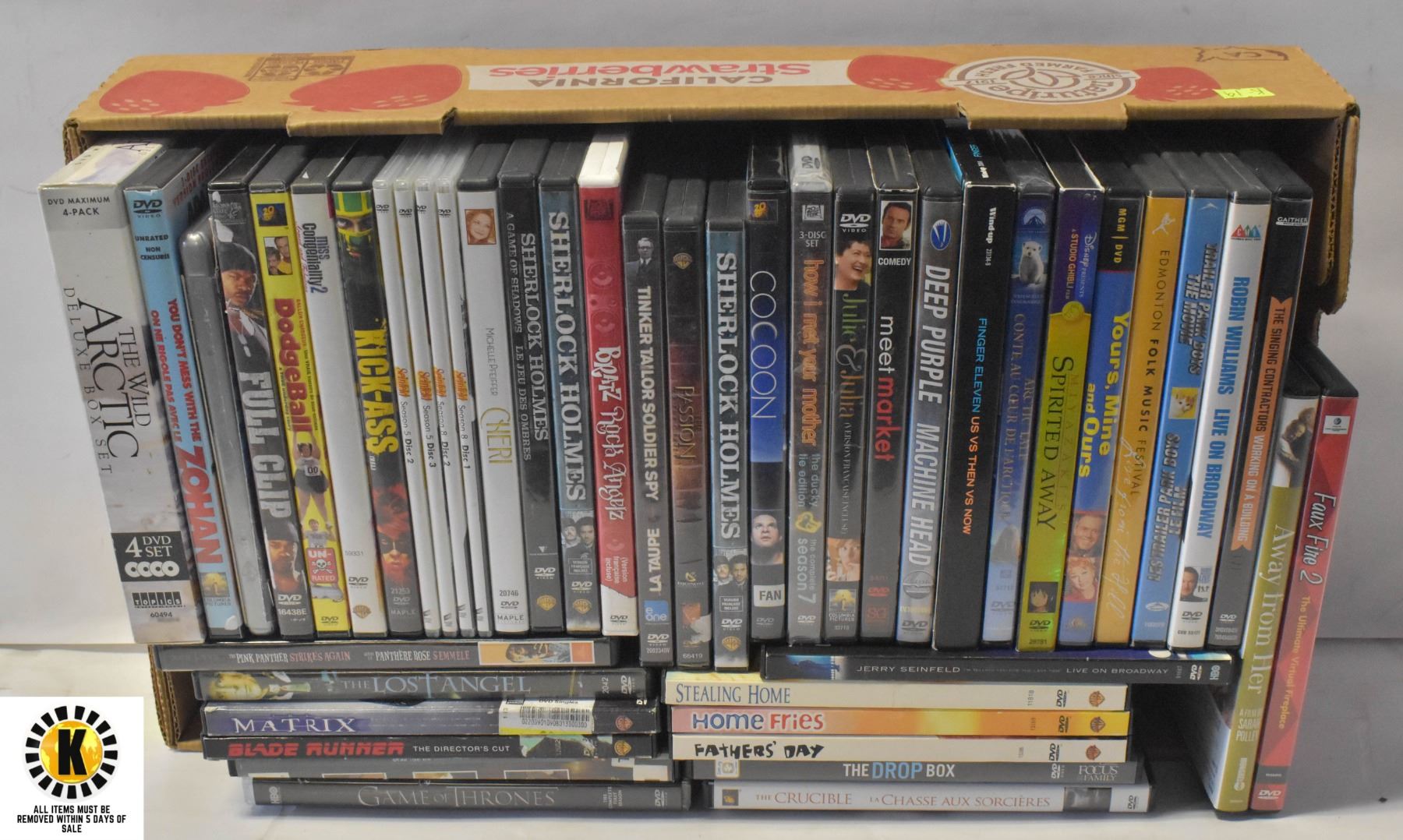FLAT OF DVDS, 45 TITLES, ASSORTED