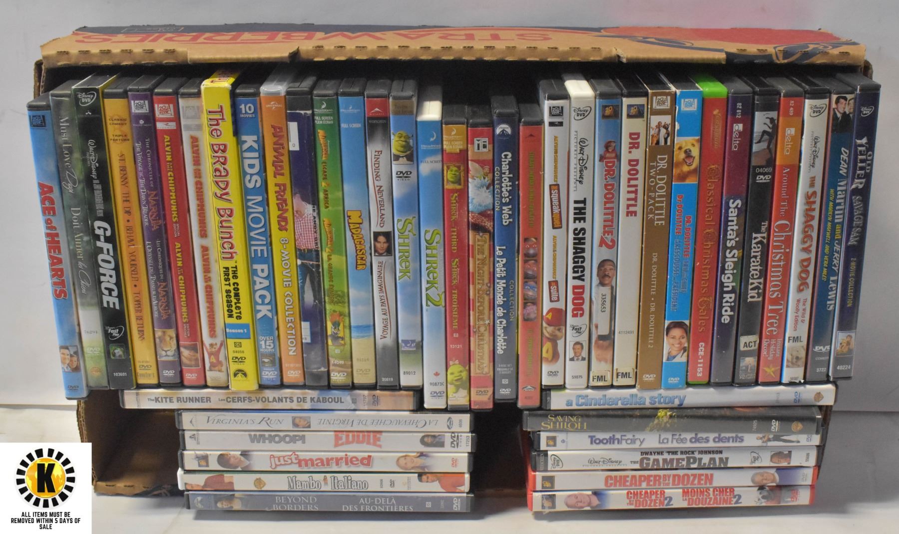 FLAT OF DVDS, 45 TITLES, FAMILY, COMEDY
