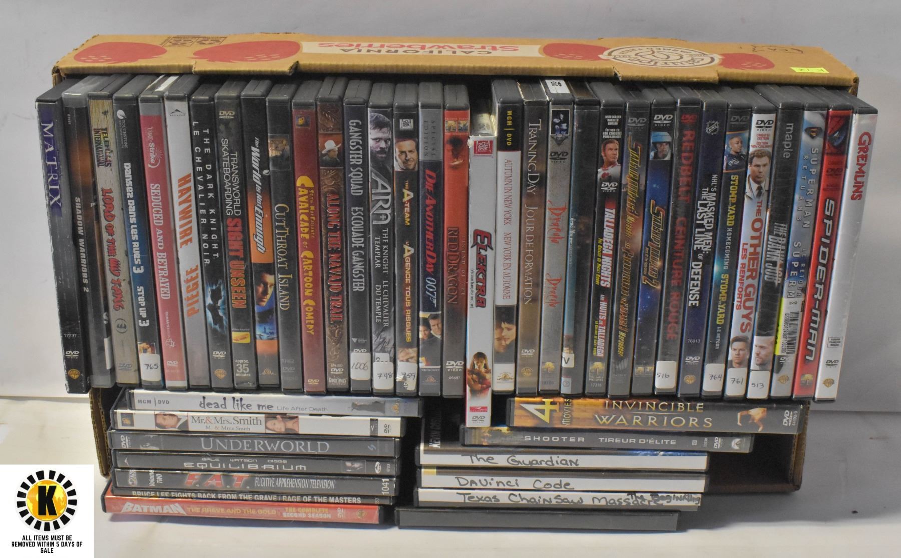 FLAT OF DVDS, 45 TITLES, MIXED