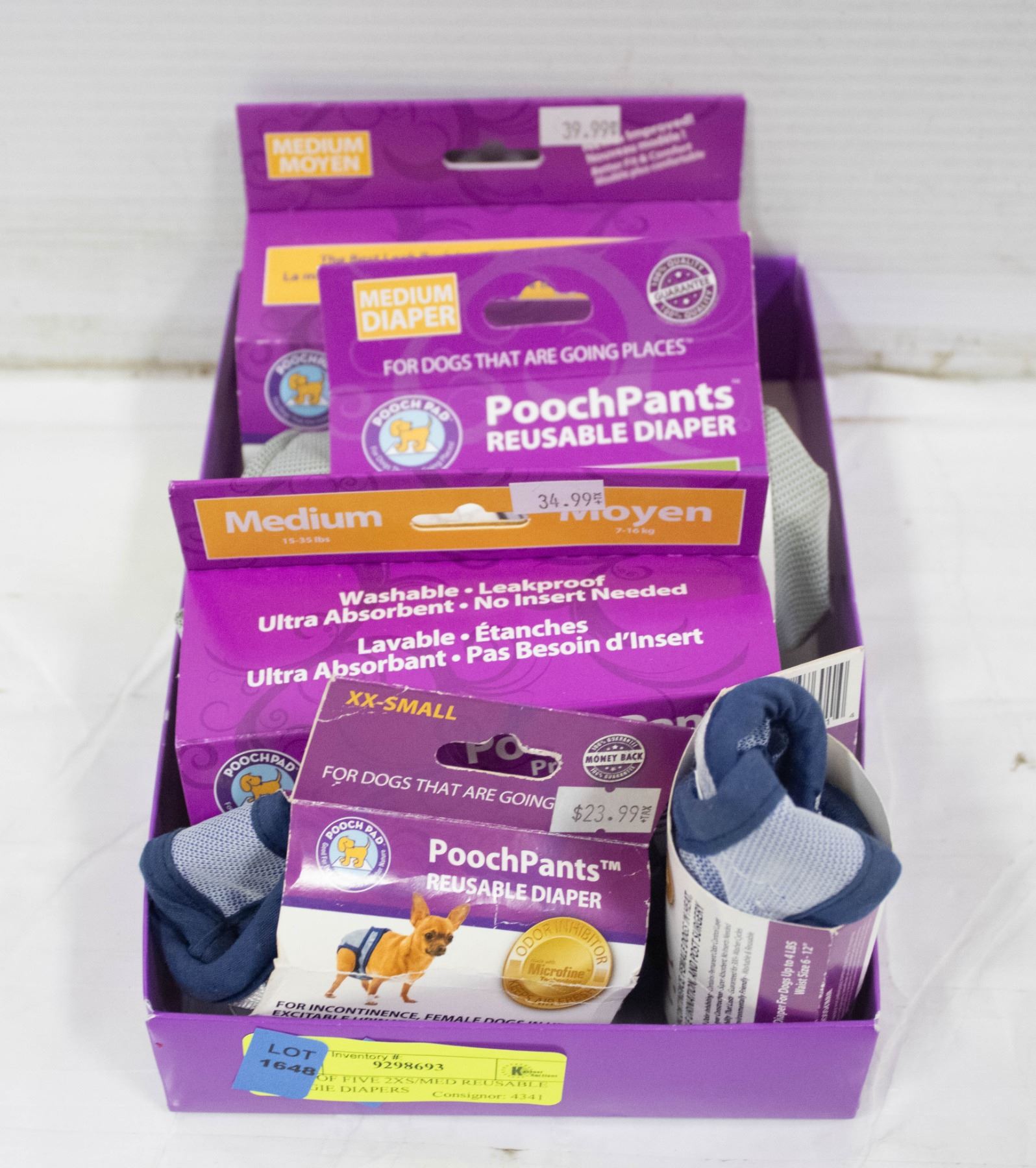 FLAT OF FIVE 2XS/MED REUSABLE DOGGIE DIAPERS