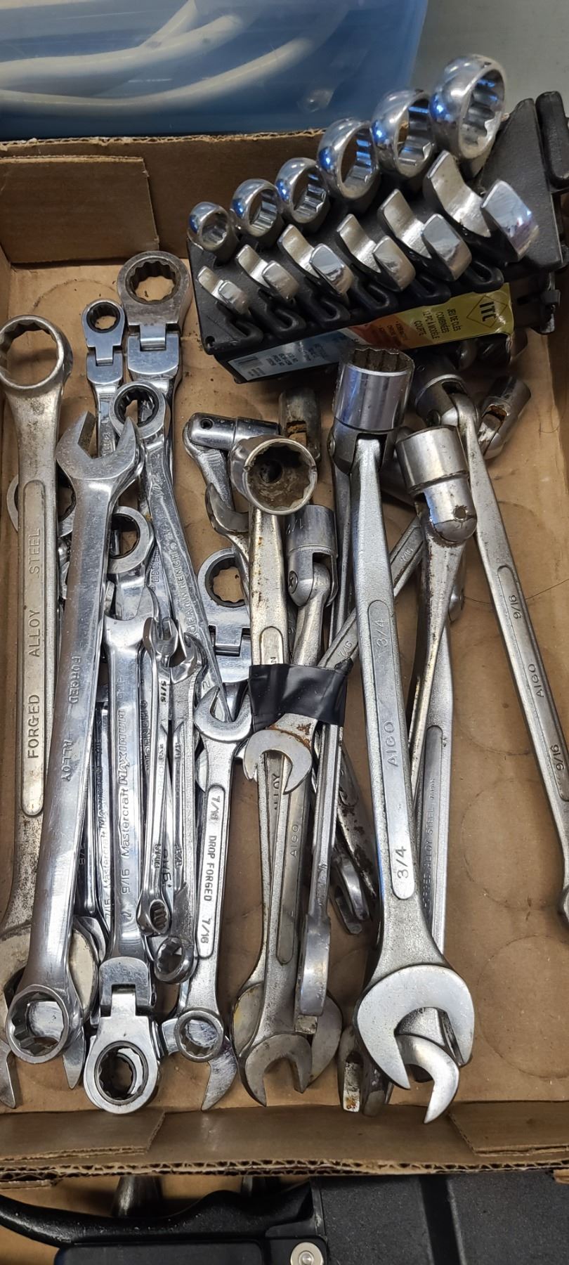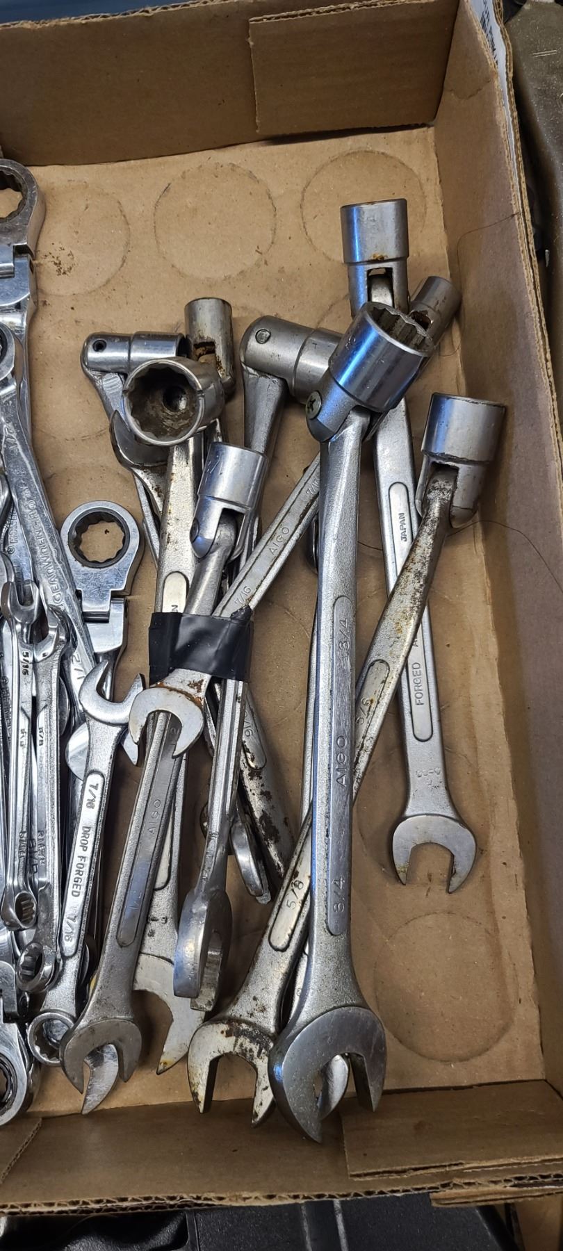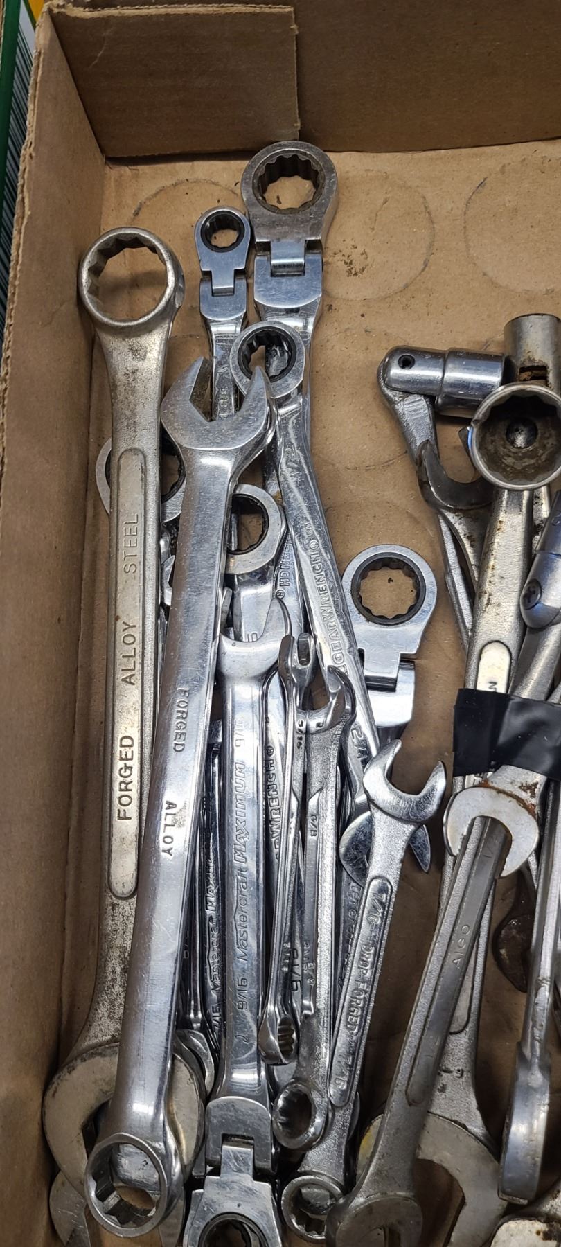VAST ASSORTMENT OF FLAT WRENCHES VARIOUS BRANDS & SIZES. INCLUDES: FLEX HEAD, METRIC & IMPERIAL ITC SET