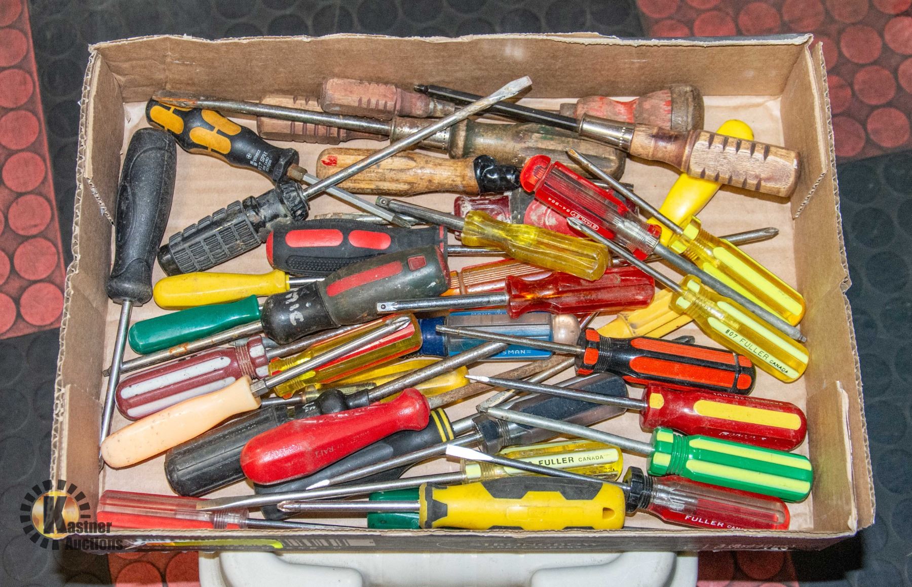 FLAT OF FULLER PLUS ASSORTED SCREWDRIVERS