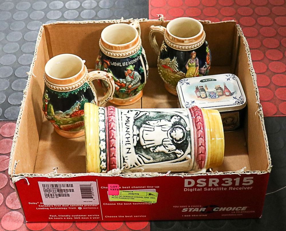 FLAT OF GERMAN STEINS, ONE 1905, PLUS NABISCO TIN