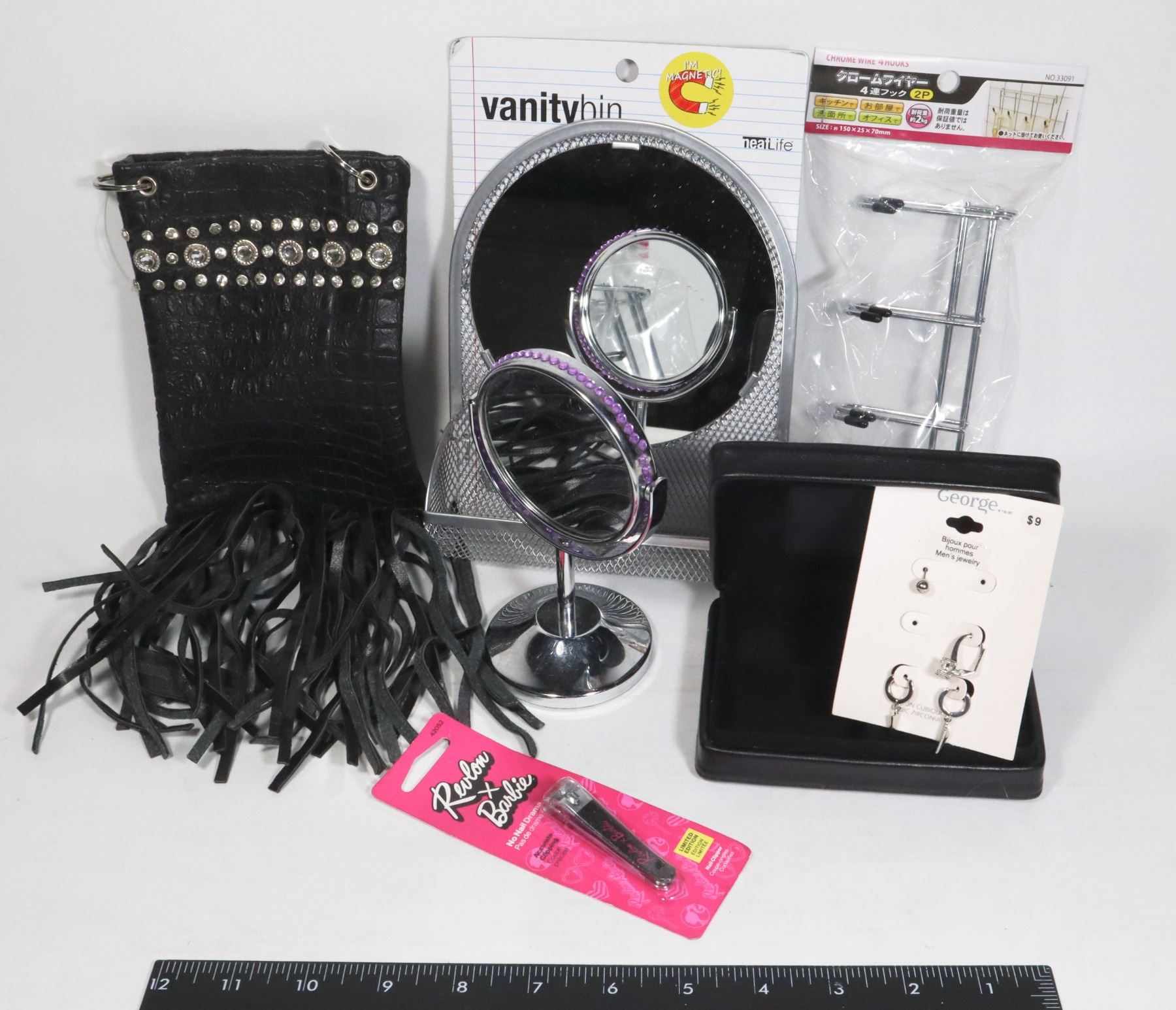 MAGNETIC MIRROR, NAIL CLIPPERS, JEWELRY BOX, SMALL PURE/ BAG, AND MORE. MOST NEW