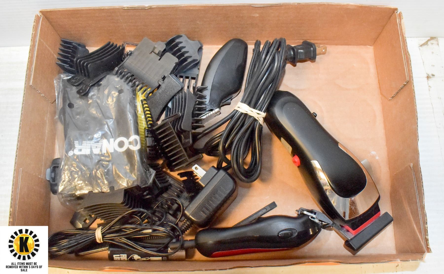 FLAT OF HAIR CLIPPERS PLUS ATTACHMENTS