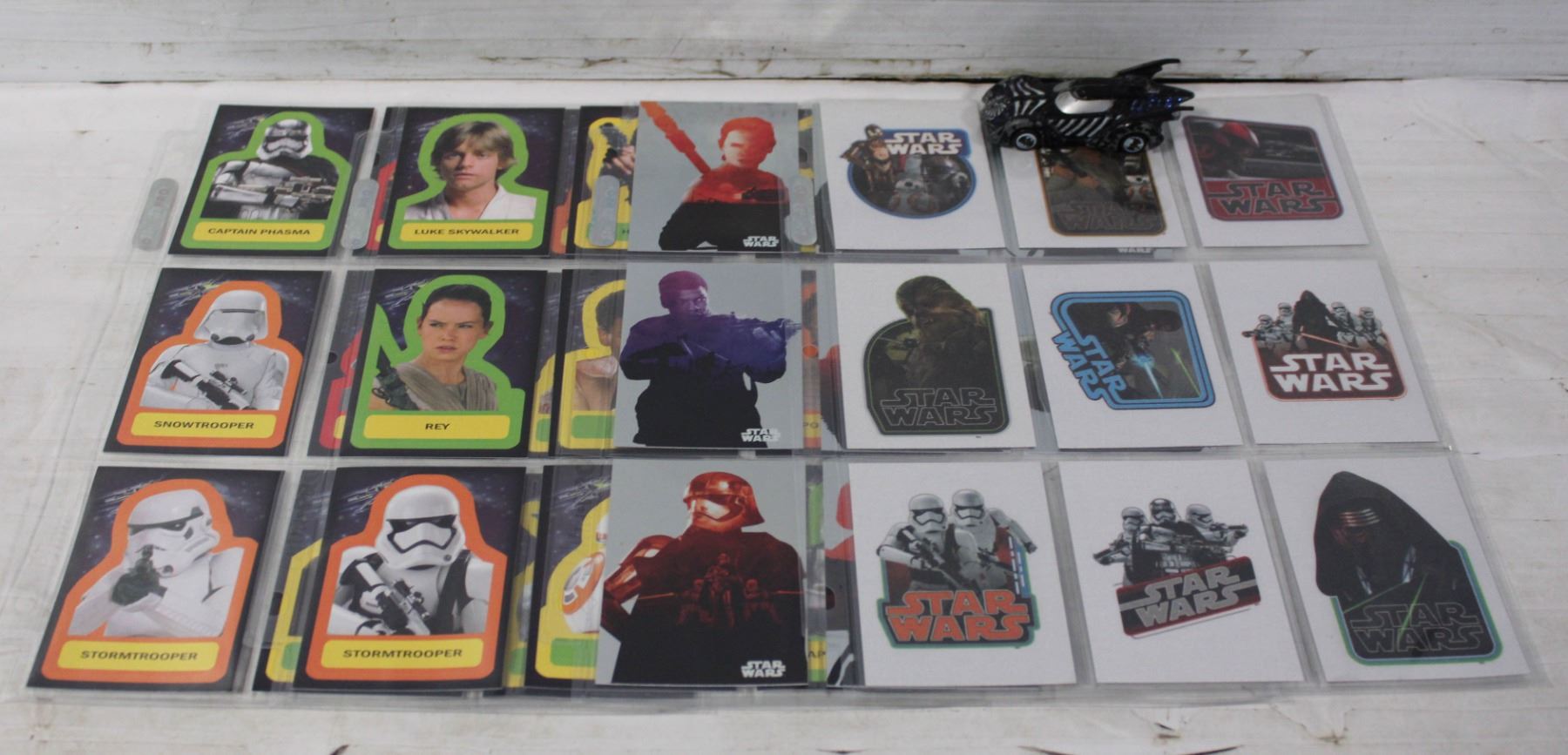FOREVER DIECAST AND 4 VINTAGE COLLECTABLE SHEET OF STAR WARS CARDS SET