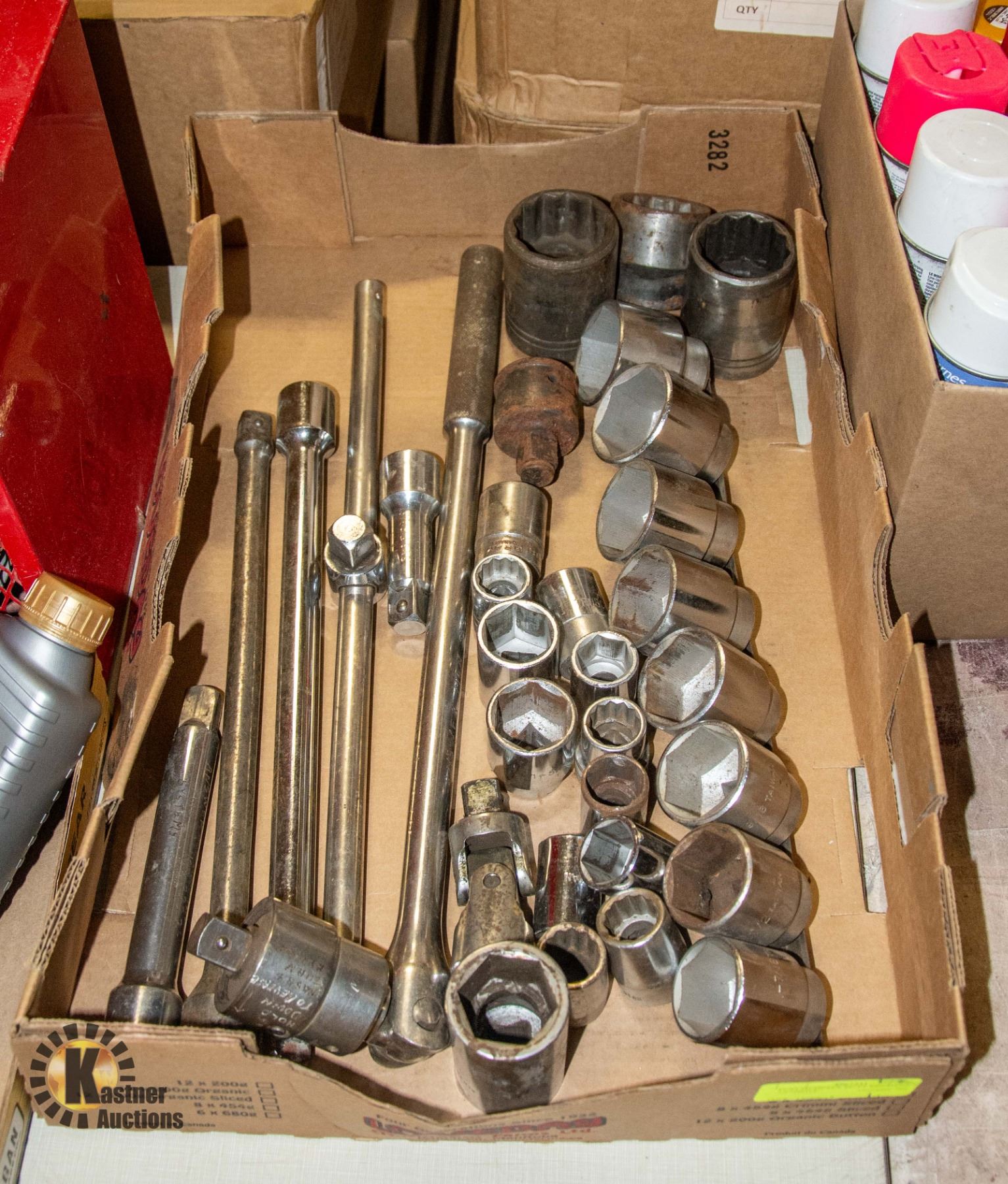 LARGE SOCKETS, LONG BREAKER BAR, SPINNER BAR, 4 EXTENSIONS, 24 SOCKETS, SOCKET HOLDER, HEAVY DUTY RATCHET SOCKET FOR QUICK CHANGE "GRAY, ARMSTRONG, ETC. (34 PIECES TOTAL) **ALL ITEMS MUST BE REMOVED BY 5PM SATURDAY, OCTOBER 12TH 2024. ALL REMAINING ITEMS WILL BE SUBJECT TO A $6.00 PER DAY STORAGE CHARGE. ANY ITEMS REMAINING AFTER MONDAY, OCTOBER 27TH 2024 WILL BE CONSIDERED FORFEITED. NO REFUNDS WILL BE ISSUED FOR FORFEITED ITEMS. TO SCHEDULE A PICK UP APPOINTMENT CLICK HERE
