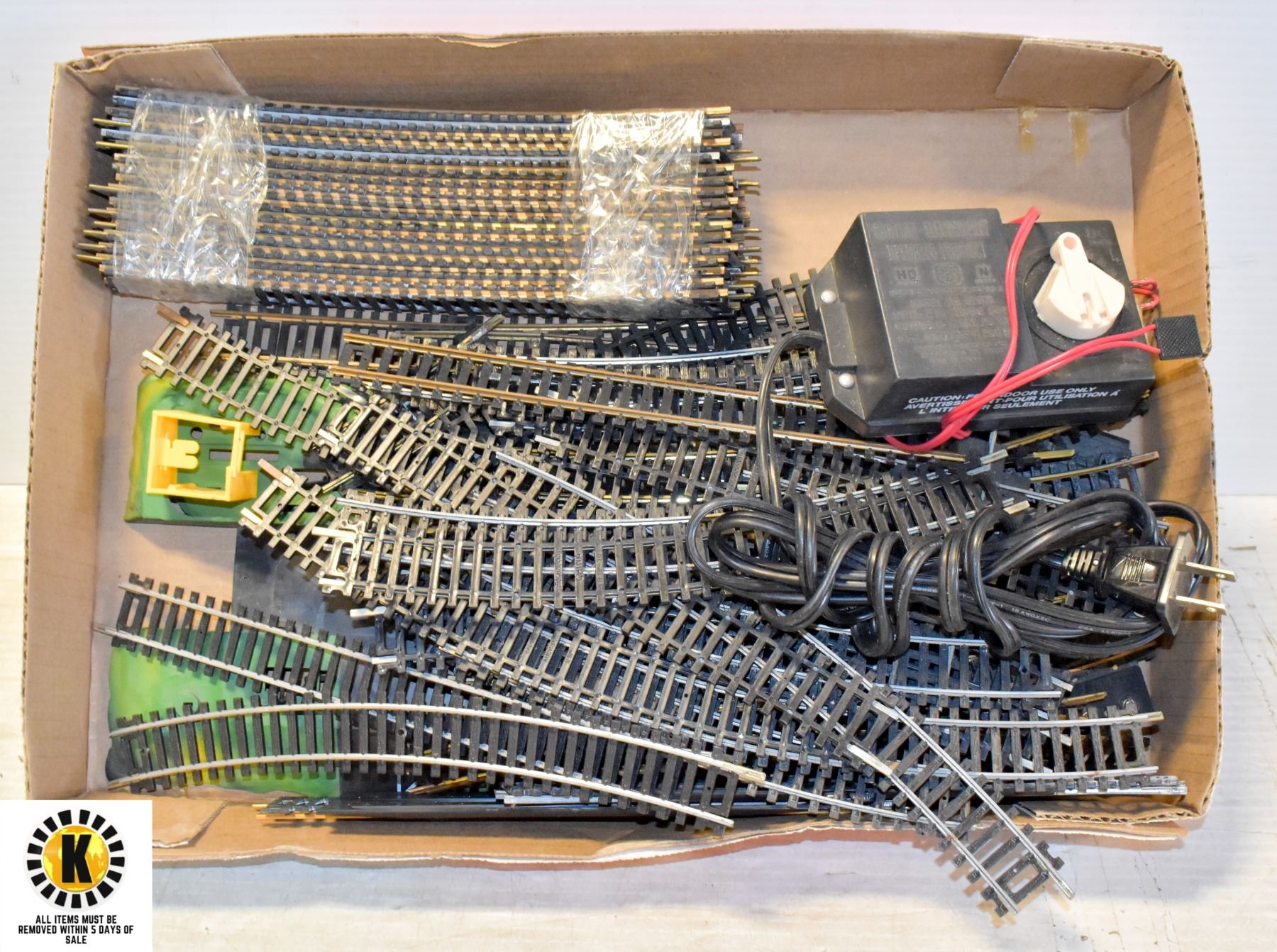FLAT OF HO SCALE TRAIN TRACKS, WITH CONTROLLER