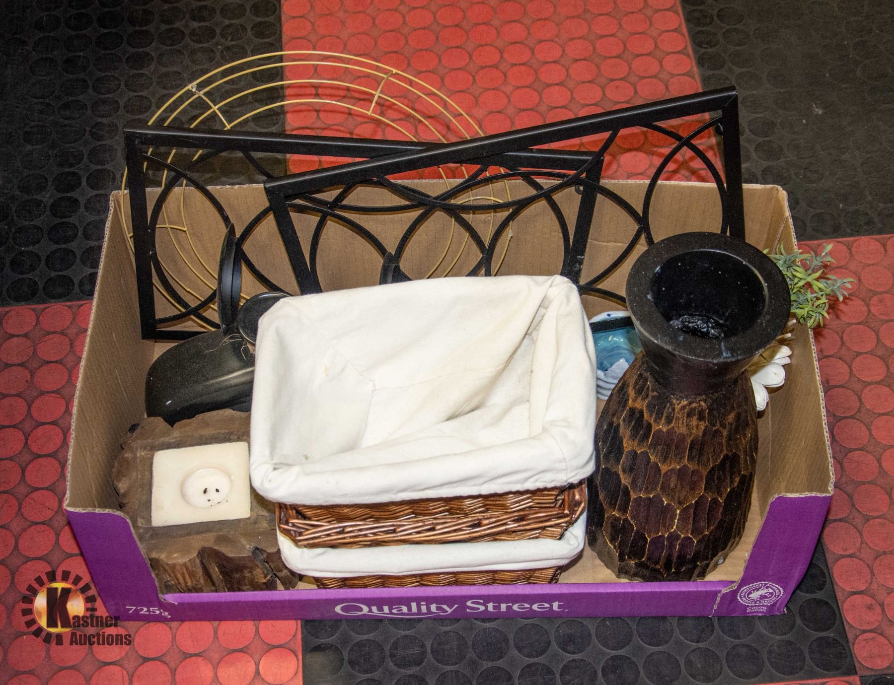 FLAT OF HOUSEHOLD DECOR INCLUDES CANDLES,