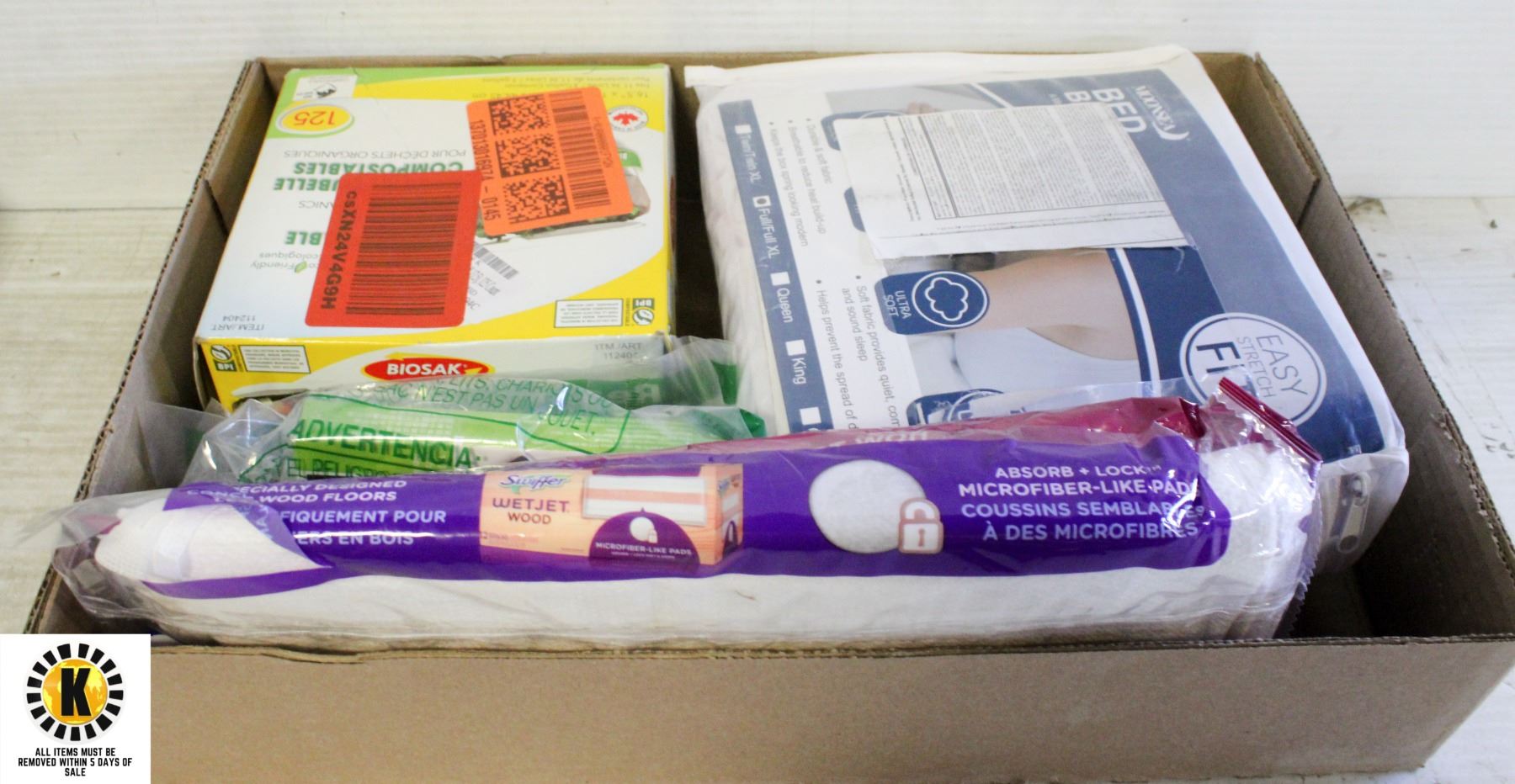 COMPOST BAGS, BEDDING SKIRT, SWIFFER PADS, STAMP PAD, REMOTE CONTROL