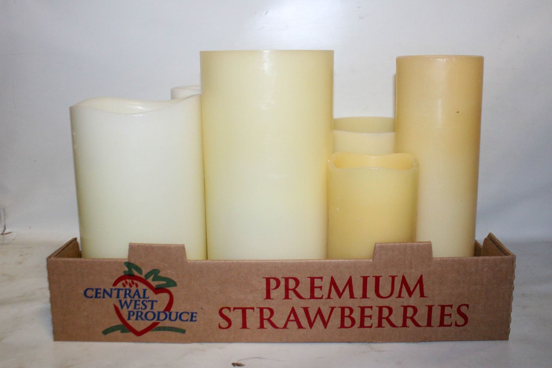 FLAT OF LARGE, REAL WAX, FLAMLESS CANDLES