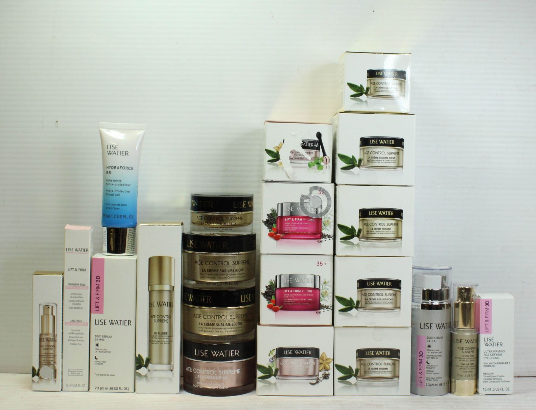 FLAT OF LISE WATIER ASSORTED SKIN CARE PRODUCTS.