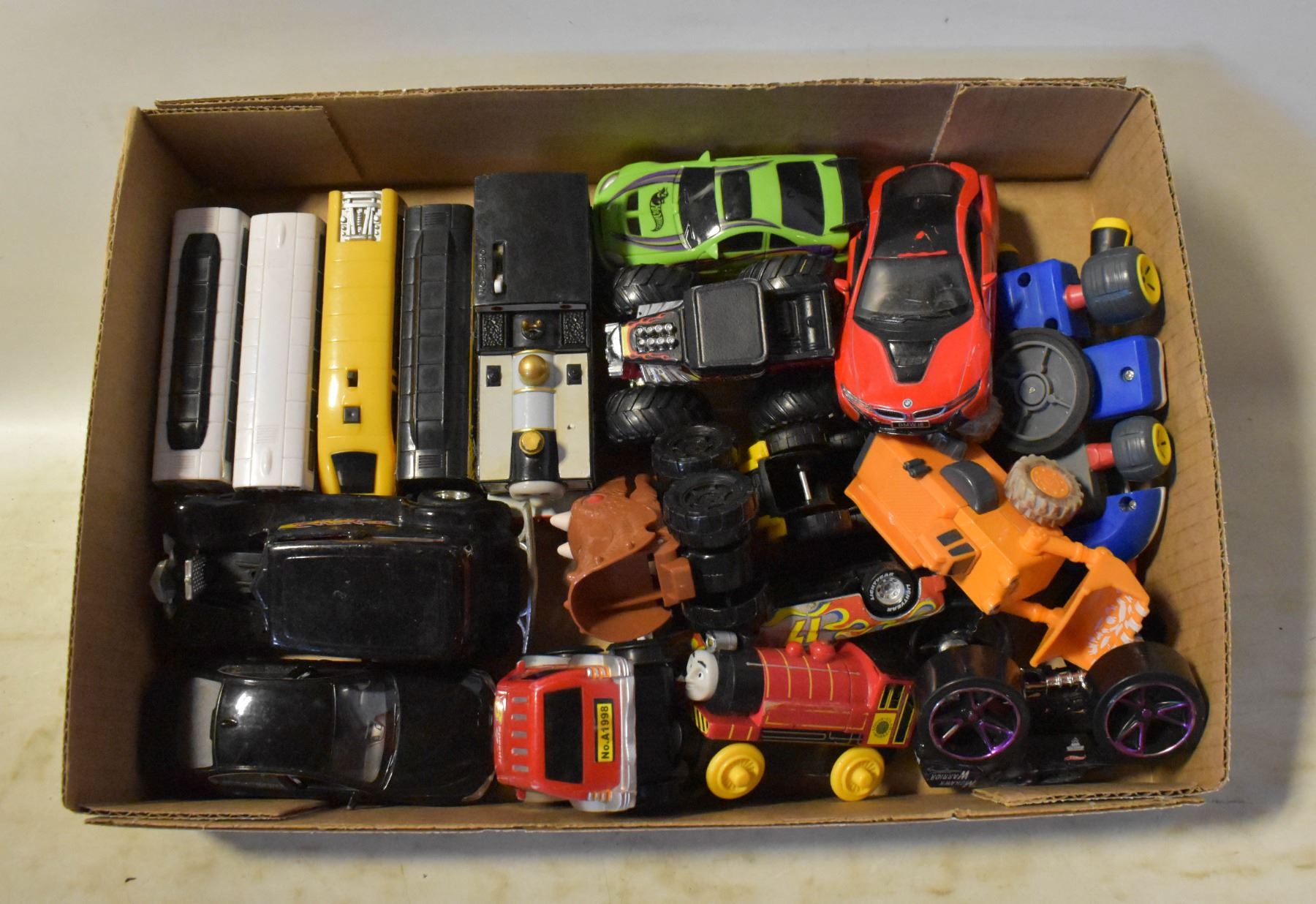 FLAT OF MED SIZE DIE CAST CARS AND TRAINS