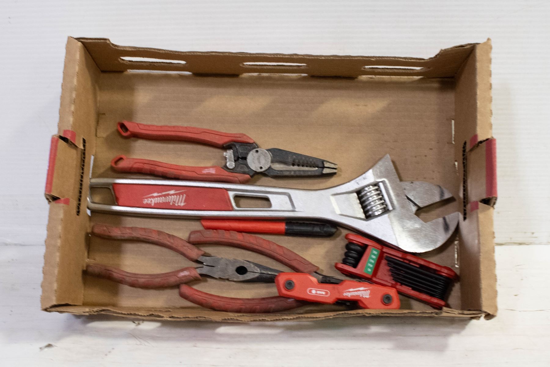 MILWAUKEE 15" CRESCENT WRENCH, MILWAUKEE NEEDLENOSE, SNIPS AND WIRE STRIPPERS, SAE HEX KEY SET, TORX KEY SET, ETC. **ALL ITEMS MUST BE REMOVED BY 5PM SATURDAY, APRIL 12TH 2025. ALL REMAINING ITEMS WILL BE SUBJECT TO A $6.00 PER DAY STORAGE CHARGE. ANY ITEMS REMAINING AFTER MONDAY, APRIL 28TH 2025 WILL BE CONSIDERED FORFEITED. NO REFUNDS WILL BE ISSUED FOR FORFEITED ITEMS. TO SCHEDULE A PICK UP APPOINTMENT CLICK HERE