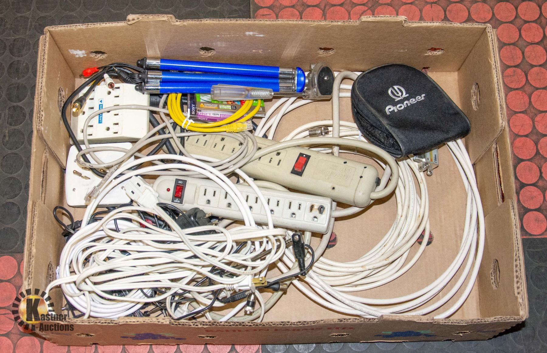 FLAT OF MISC EXTENTION CORDS AND PLUG INS ETC