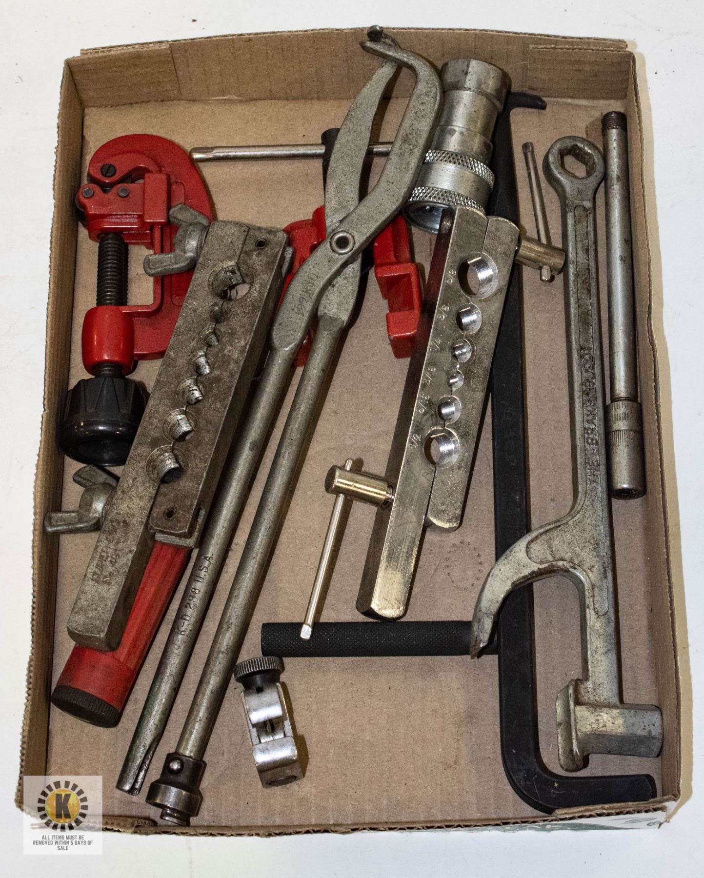 TOOLS/ PIPE CUTTERS/ ETC **ALL ITEMS MUST BE REMOVED BY 5PM SATURDAY, APRIL 5TH 2025. ALL REMAINING ITEMS WILL BE SUBJECT TO A $6.00 PER DAY STORAGE CHARGE. ANY ITEMS REMAINING AFTER MONDAY, APRIL 21ST 2025 WILL BE CONSIDERED FORFEITED. NO REFUNDS WILL BE ISSUED FOR FORFEITED ITEMS. TO SCHEDULE A PICK UP APPOINTMENT CLICK HERE