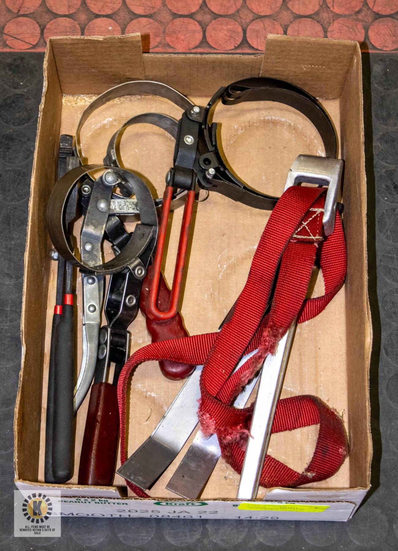 FLAT OF MISC OIL FILTER WRENCHES, ETC