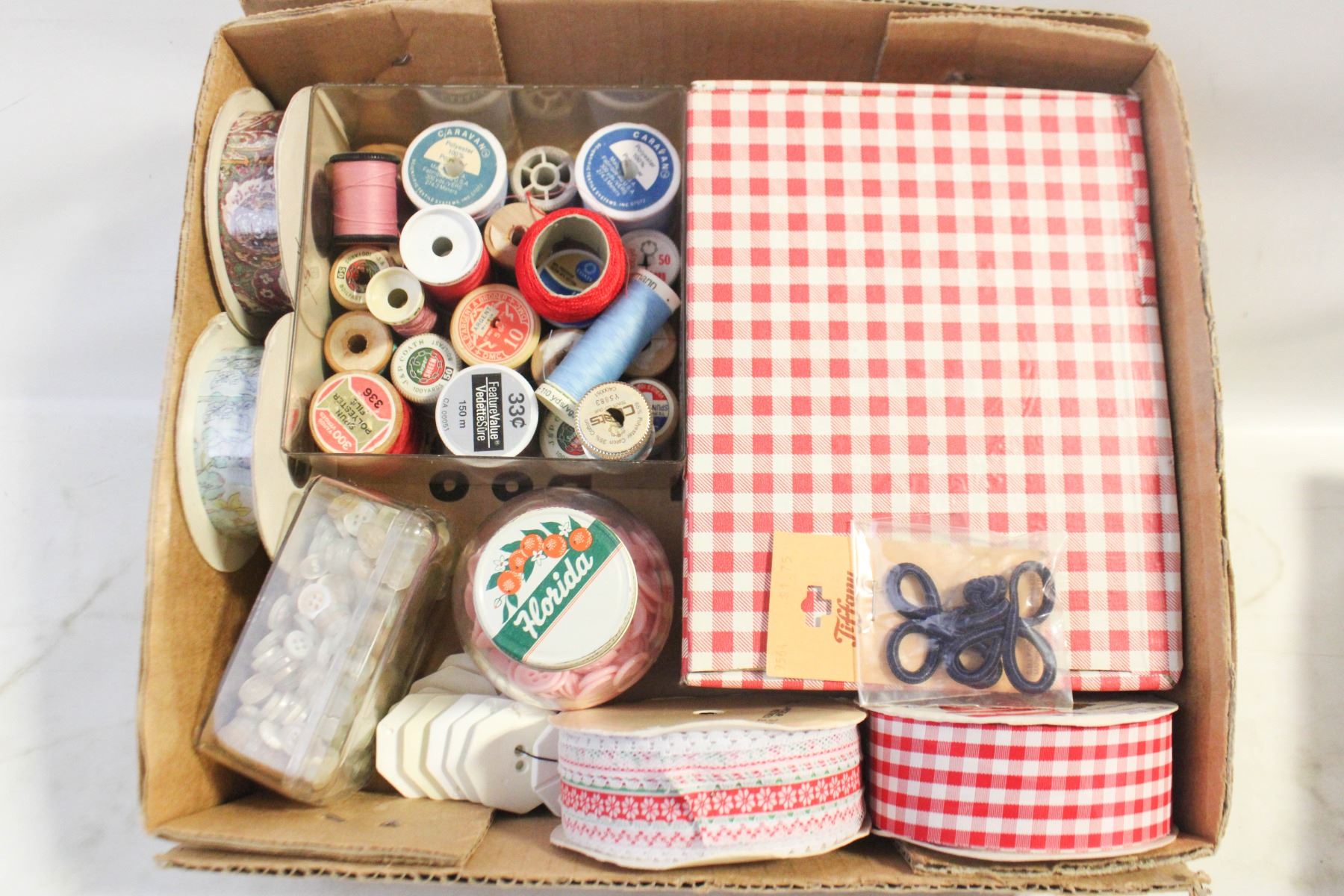 FLAT OF MISC SEWING ITEMS INC THREAD,