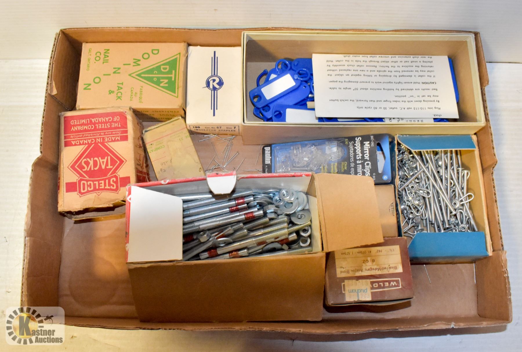 FLAT OF MISCELLANEOUS NEW AND VINTAGE HARDWARE