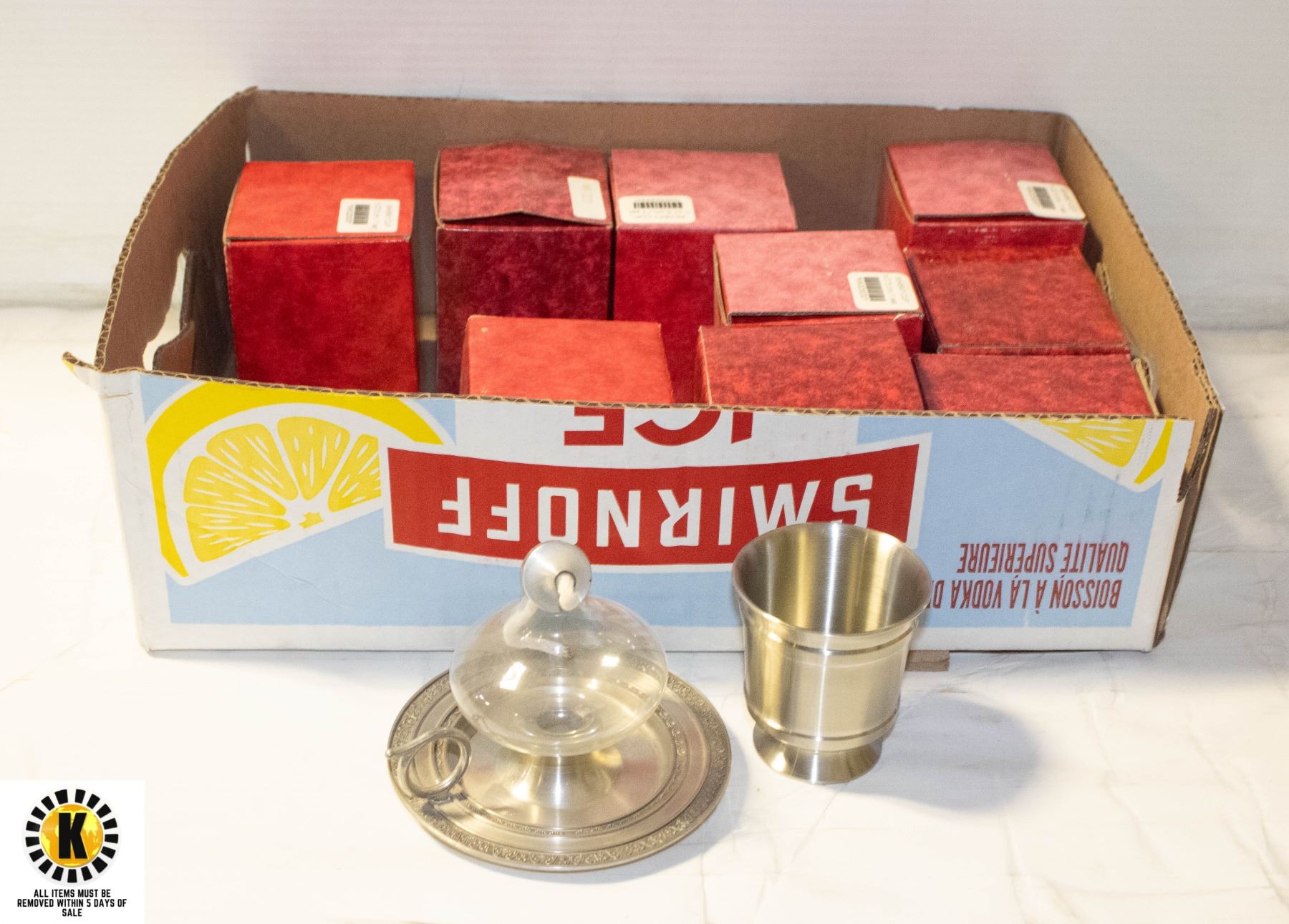 FLAT OF NEW ASSORTED PEWTER HOME ACCENTS