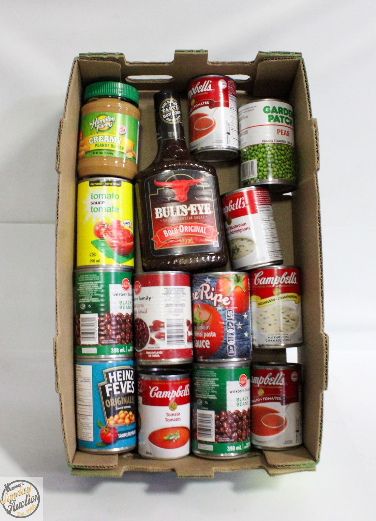 BULLSEYE BBQ SAUCE, 16 OZ HAMPTON FARMS PEANUT BUTTER, AND 12 CANS OF SOUP, BEANS AND VEGETABLES - ALL BEST BEFORE DATES 2026-2027 **ALL ITEMS MUST BE REMOVED BY 5PM SATURDAY, NOVEMBER 1ST 2025. ALL REMAINING ITEMS WILL BE SUBJECT TO A $6.00 PER DAY STORAGE CHARGE. ANY ITEMS REMAINING AFTER MONDAY, NOVEMBER 17TH 2025 WILL BE CONSIDERED FORFEITED. NO REFUNDS WILL BE ISSUED FOR FORFEITED ITEMS. TO SCHEDULE A PICK UP APPOINTMENT CLICK HERE