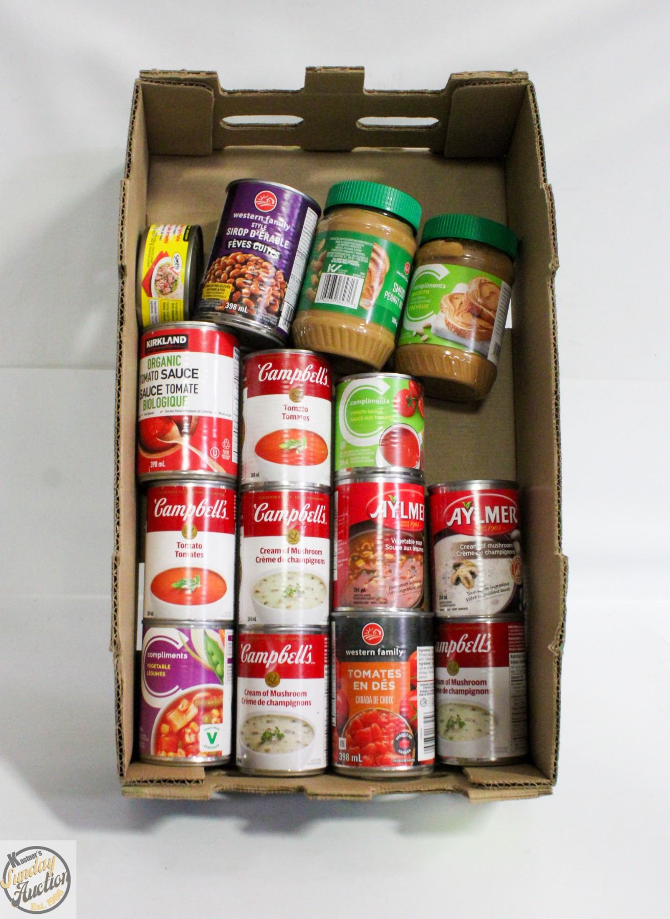 PEANUT BUTTERS, PLUS 13 CANS OF SOUPS, BEANS, TUNA, AND TOMATOES - ALL BEST BEFORE DATES 2026-2027 **ALL ITEMS MUST BE REMOVED BY 5PM SATURDAY, NOVEMBER 1ST 2025. ALL REMAINING ITEMS WILL BE SUBJECT TO A $6.00 PER DAY STORAGE CHARGE. ANY ITEMS REMAINING AFTER MONDAY, NOVEMBER 17TH 2025 WILL BE CONSIDERED FORFEITED. NO REFUNDS WILL BE ISSUED FOR FORFEITED ITEMS. TO SCHEDULE A PICK UP APPOINTMENT CLICK HERE
