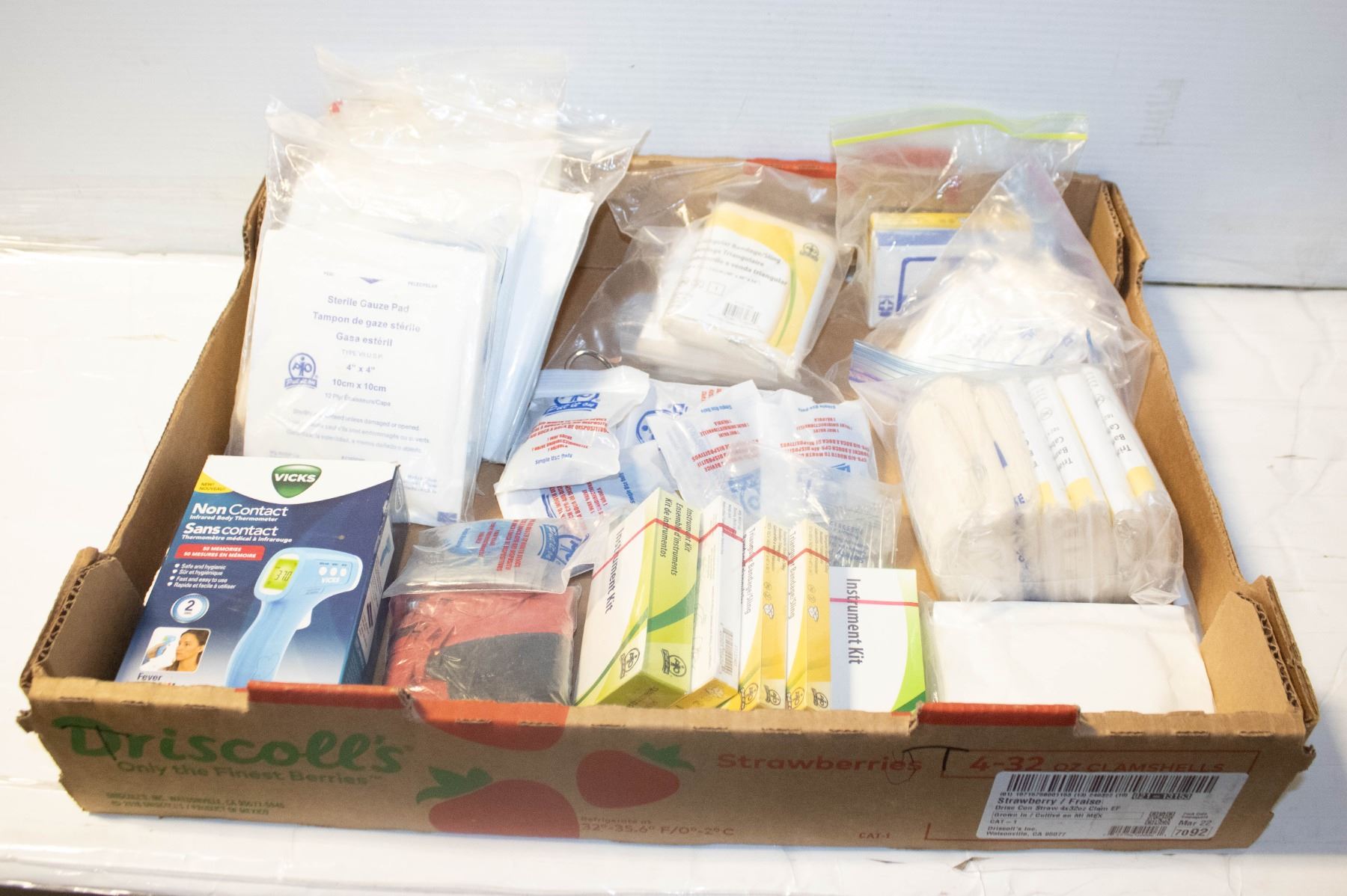 CONTACT THERMOMETER, NEW GAUZE PADS, INSTRUMENT KITS, TRIANGLE BANDAGES, ETC.