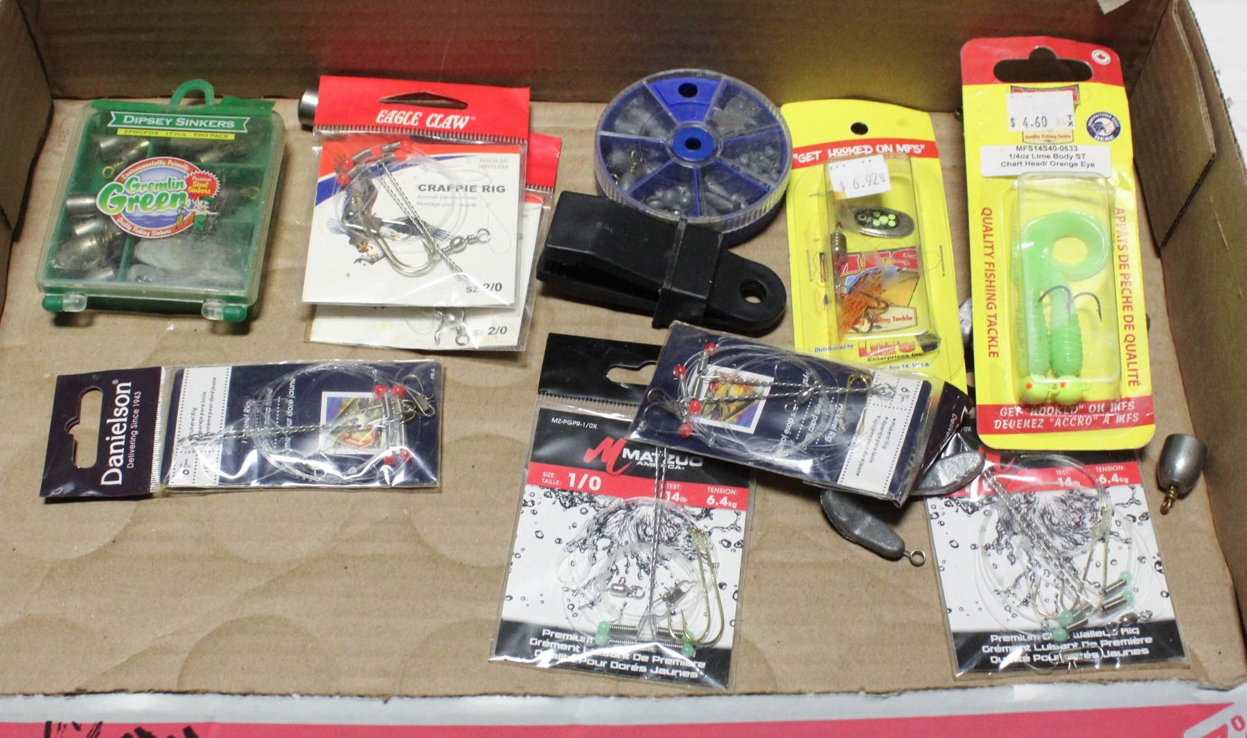FLAT OF NEW FISHING SUPPLIES PLUS WEIGHTS