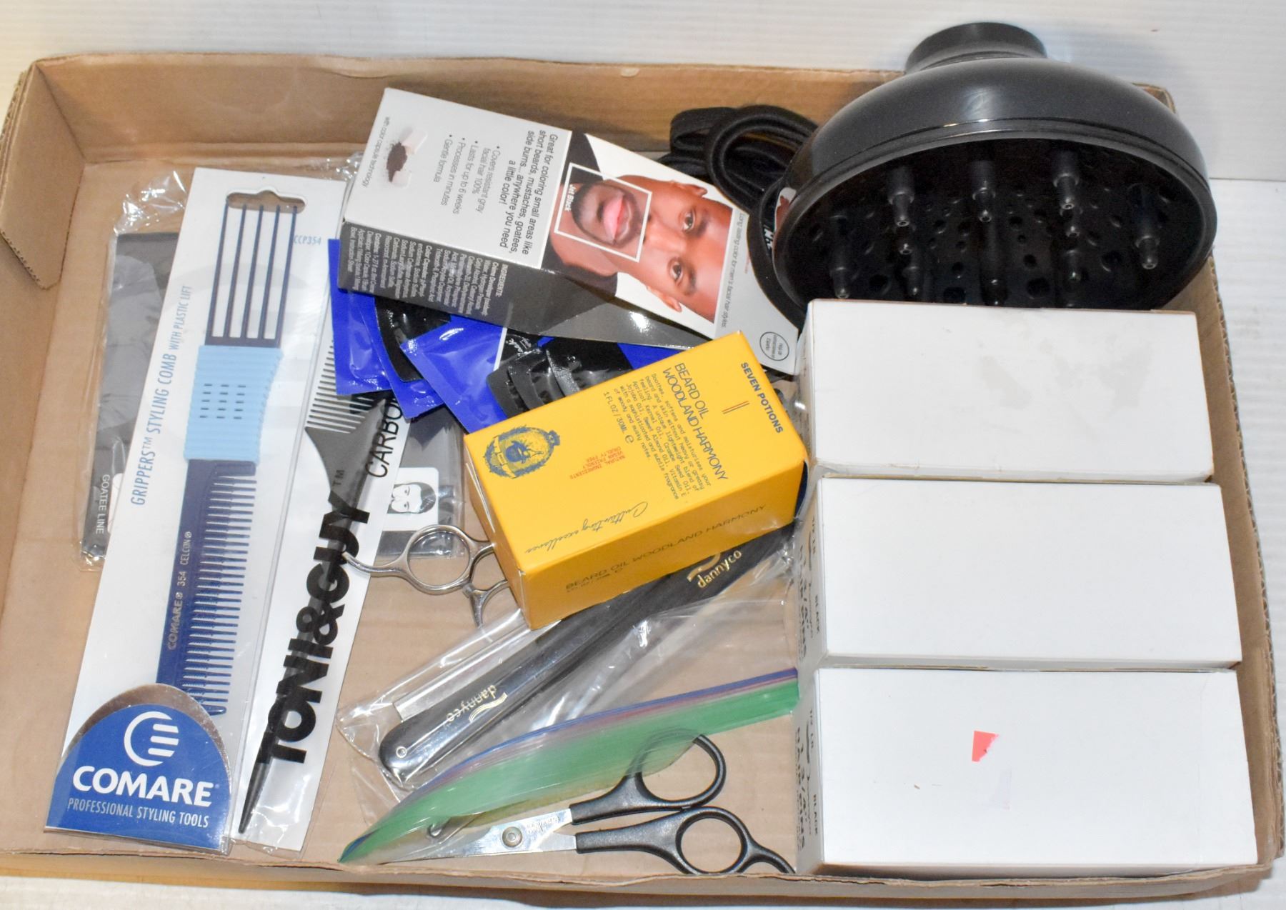 FLAT OF NEW HAIR PRODUCTS, SCISSORS, STRAIGHT
