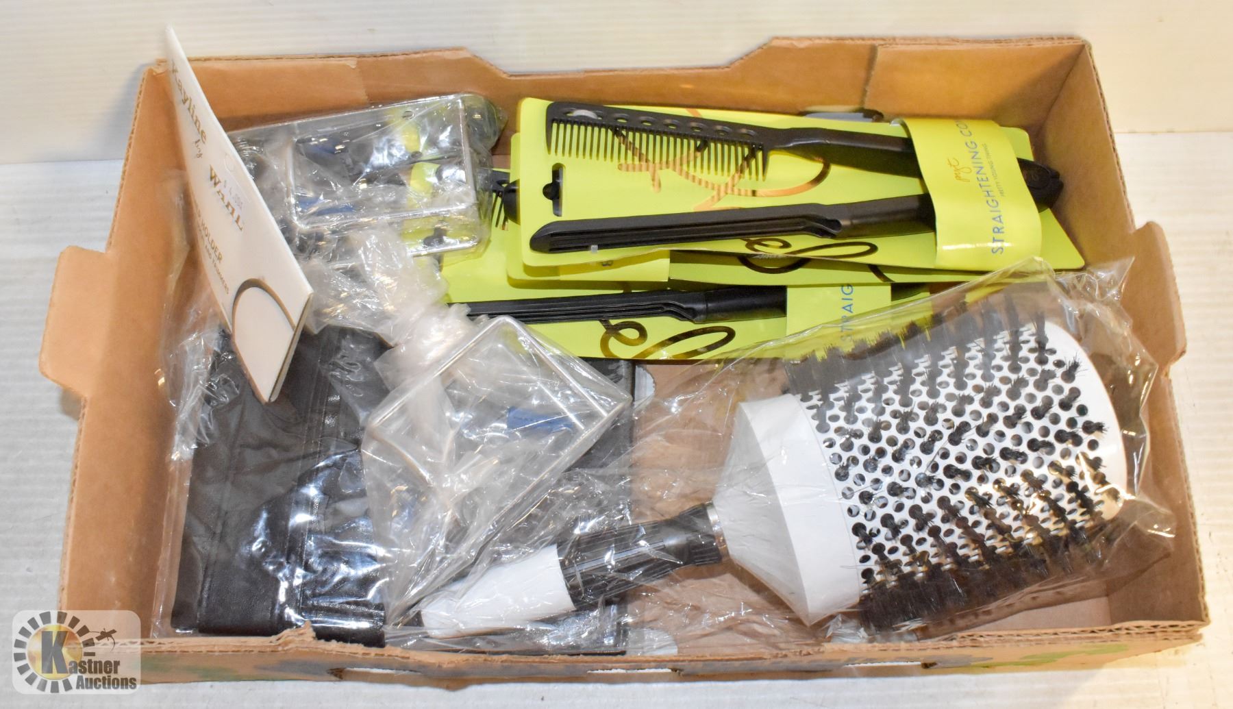 FLAT OF NEW HAIRSTYLING ITEMS, INCLUDES BELT,