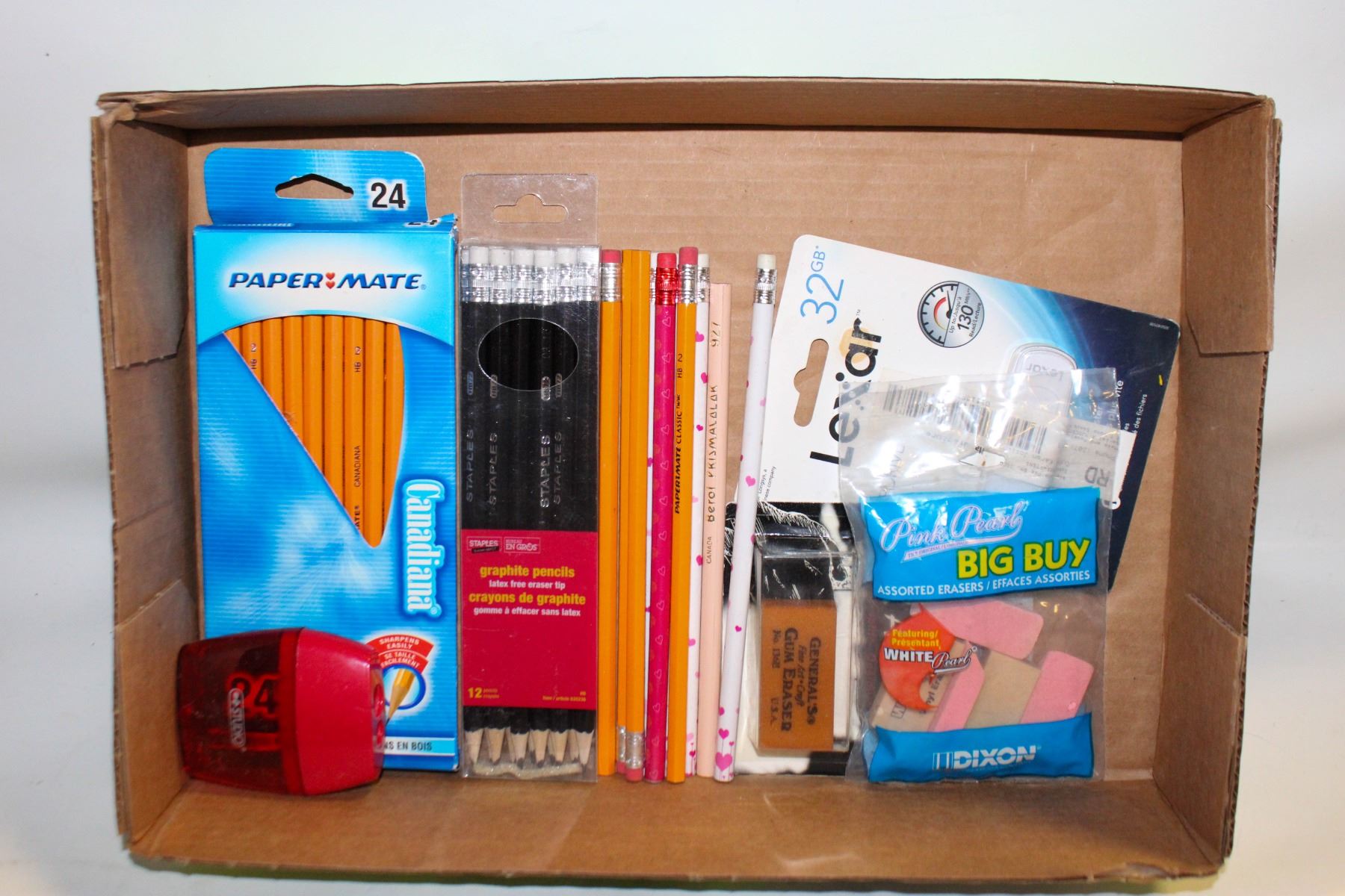 FLAT OF NEW PENCILS AND ERASERS