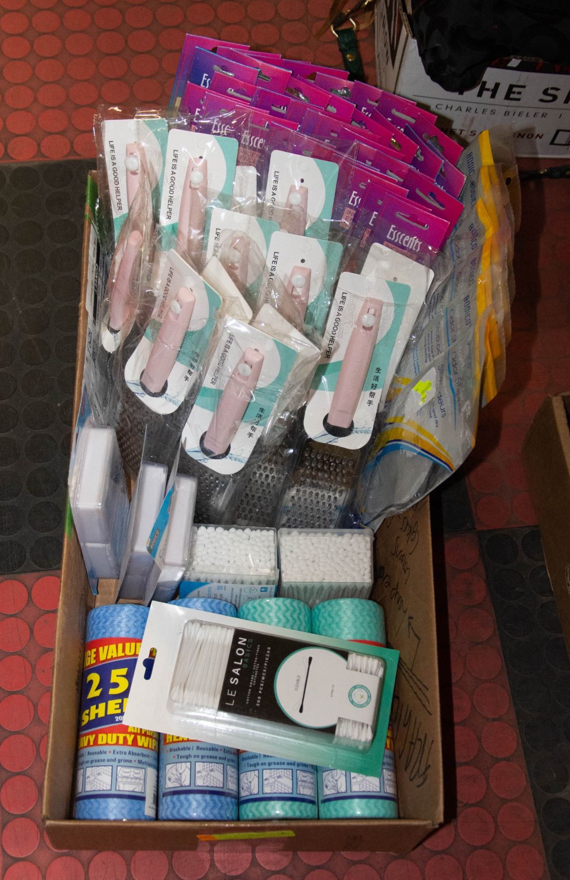FLAT OF NEW SEALED HOUSEHOLD ITEMS, INSENCE,