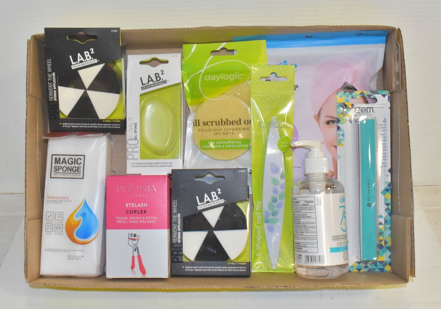 SPONGE MAKE-UP APPLICATORS, GEL MAKE-UP SPONGE, EYELASH CURLER, CLEANSING SPONGE, TEA TREE TREATED NAIL FILE, AFTER-SHOWER HAIR TOWEL, NAIL BUFFER + HAND SANITIZER - ALL NEW SEALED **ALL ITEMS MUST BE REMOVED BY 5PM SATURDAY, DECEMBER 3RD, 2022. ALL REMAINING ITEMS WILL BE SUBJECT TO A $6.00 PER DAY STORAGE CHARGE. ANY ITEMS REMAINING AFTER MONDAY, DECEMBER 18TH, 2022 WILL BE CONSIDERED FORFEITED. NO REFUNDS WILL BE ISSUED FOR FORFEITED ITEMS. TO SCHEDULE A PICK UP APPOINTMENT CLICK HERE