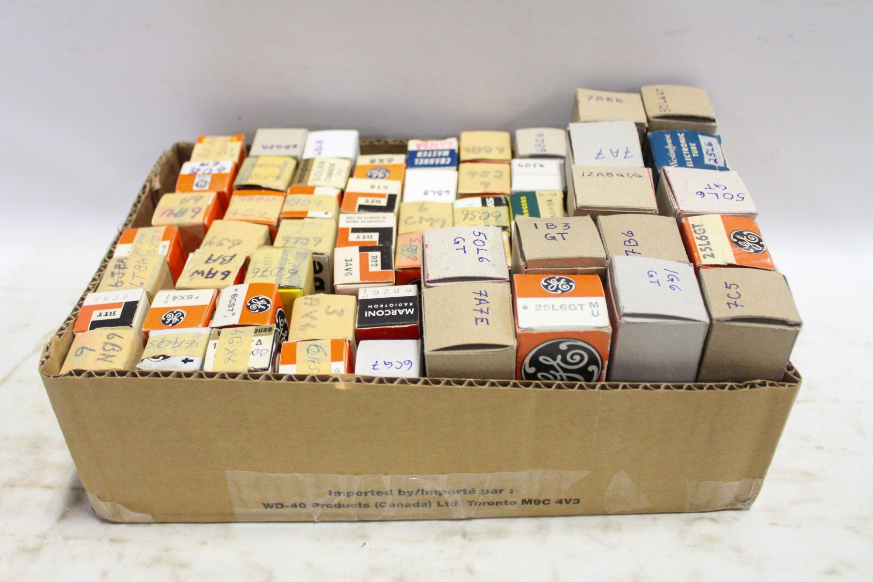 FLAT OF NEW & USED ASSORTED VINTAGE RADIO TUBES