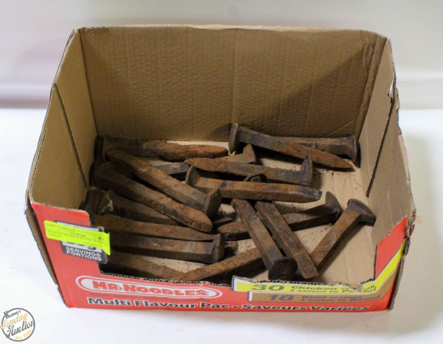 FLAT OF OLD RUSTED RAILWAY SPIKES