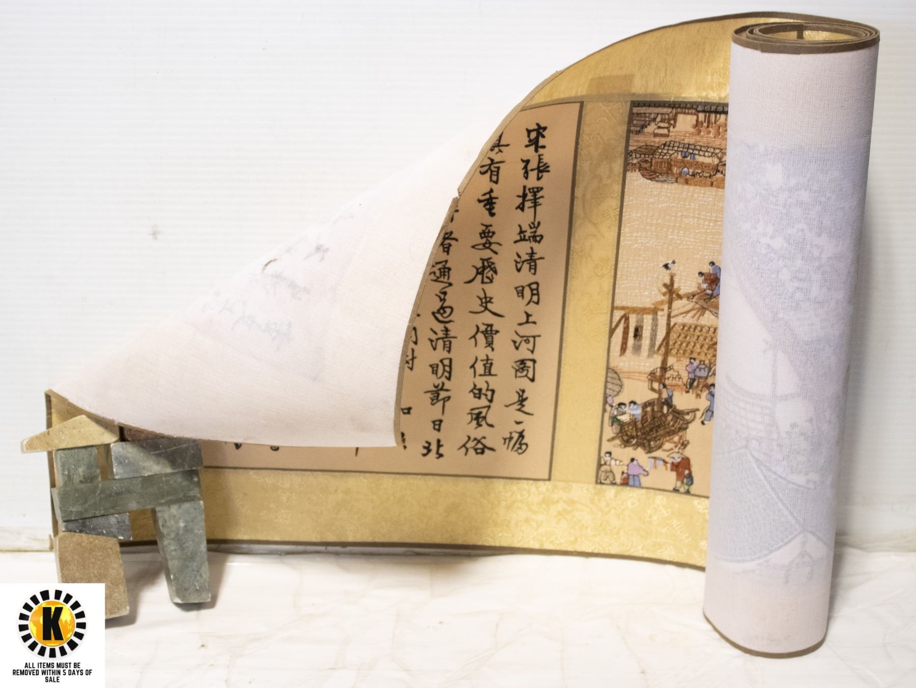 FLAT OF ORIENTAL NEEDLE POINT AND INUIT STONE ART