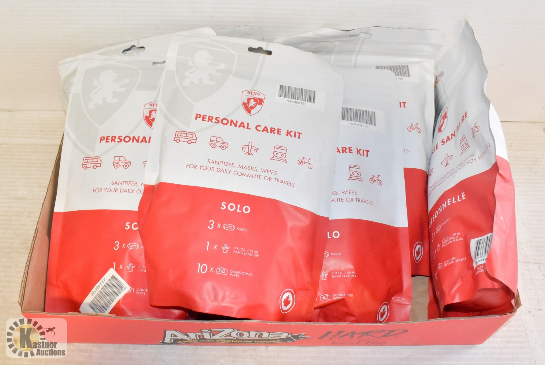 MASKS, 12 FL OZ OF HAND SANITIZER, 10 DISINFECTING WIPES.