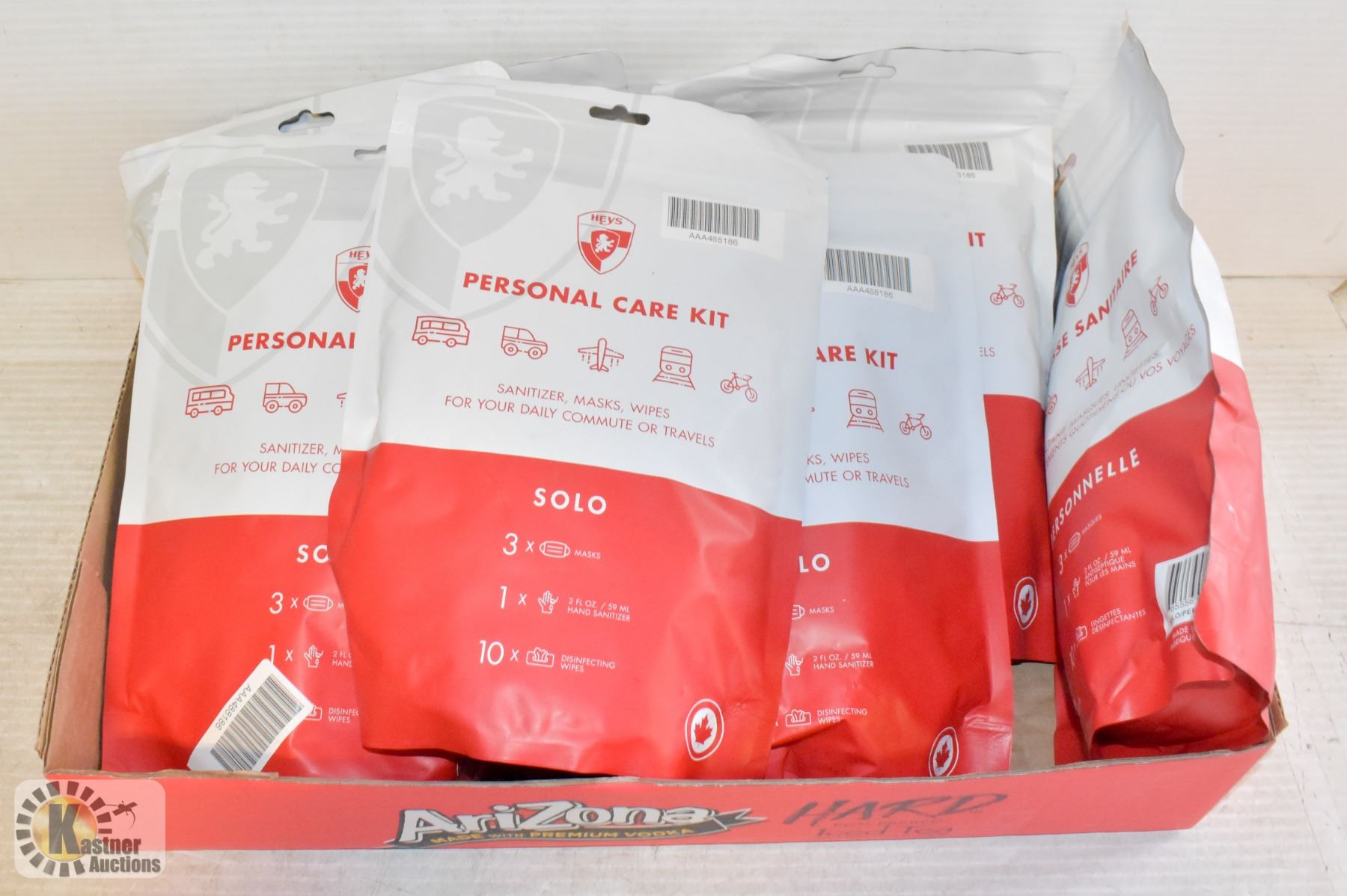 MASKS, 12 FL OZ OF HAND SANITIZER, 10 DISINFECTING WIPES.