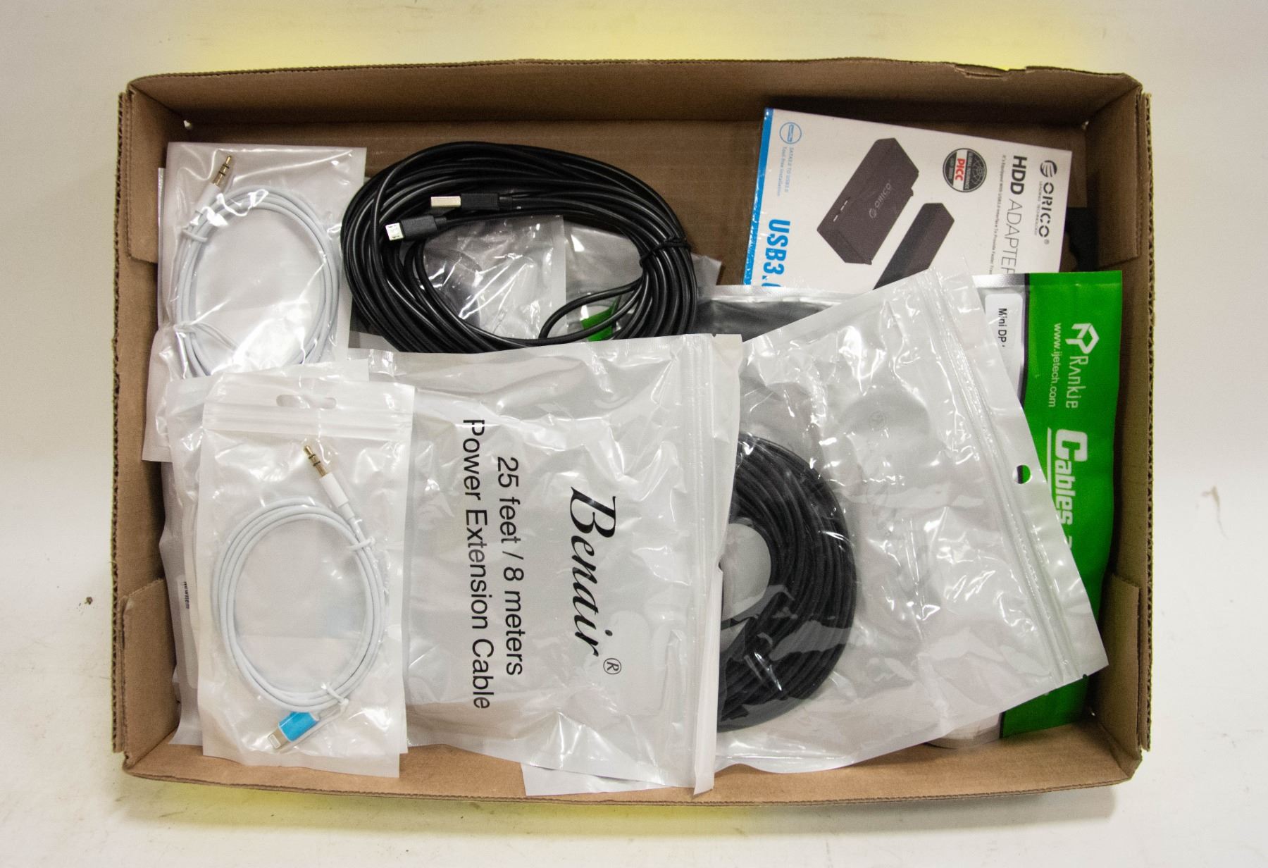 FLAT OF PHONE CHARGERS COMPUTOR CABLES ETC