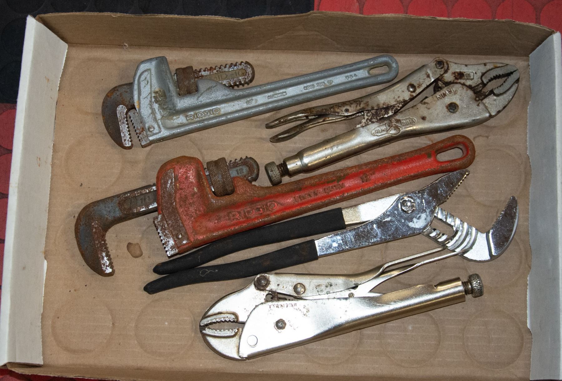 FLAT OF PIPE WRENCHES & VICE GRIPS