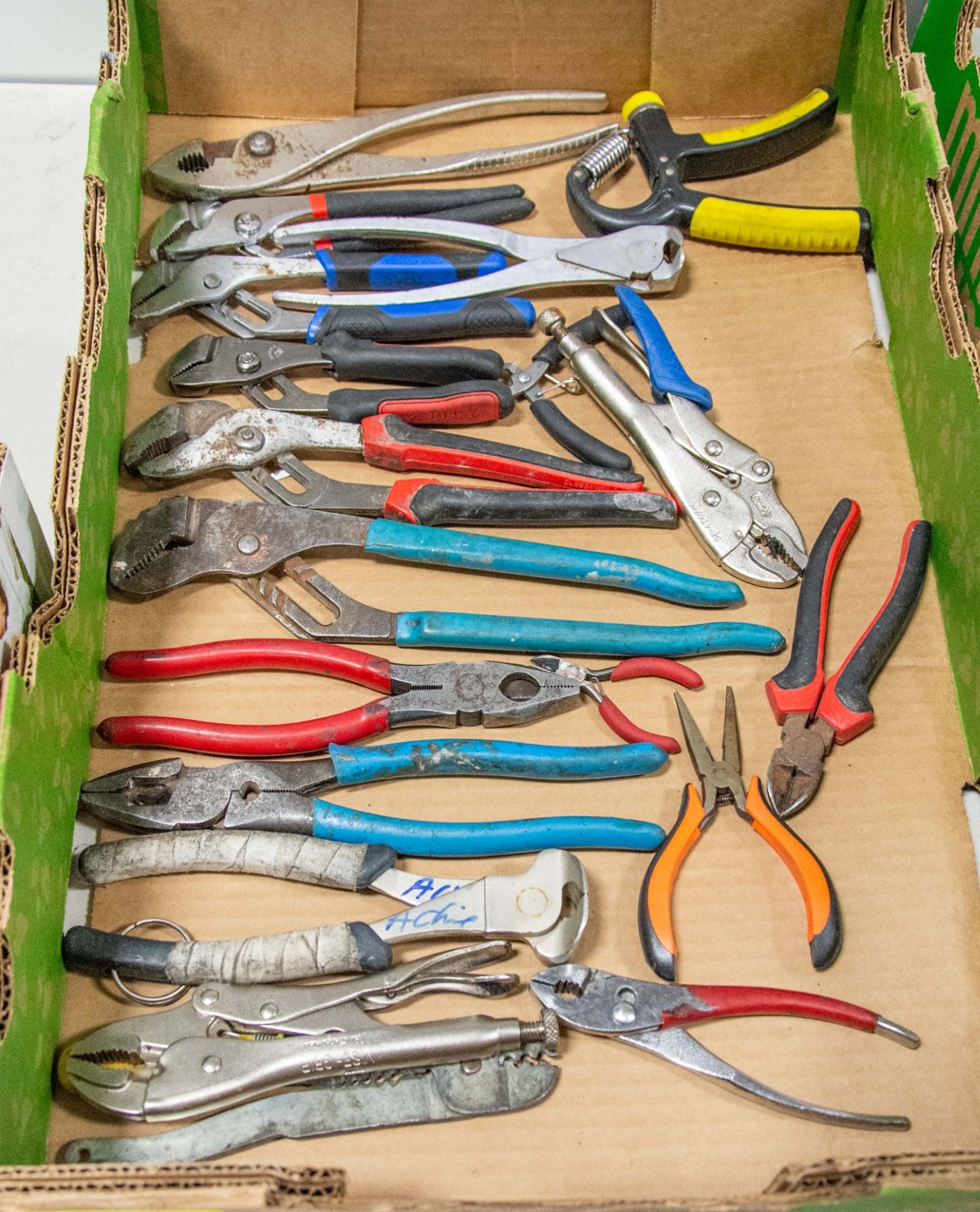 FLAT OF PLIERS, CUTTERS, SNIPS AND VICE GRIP