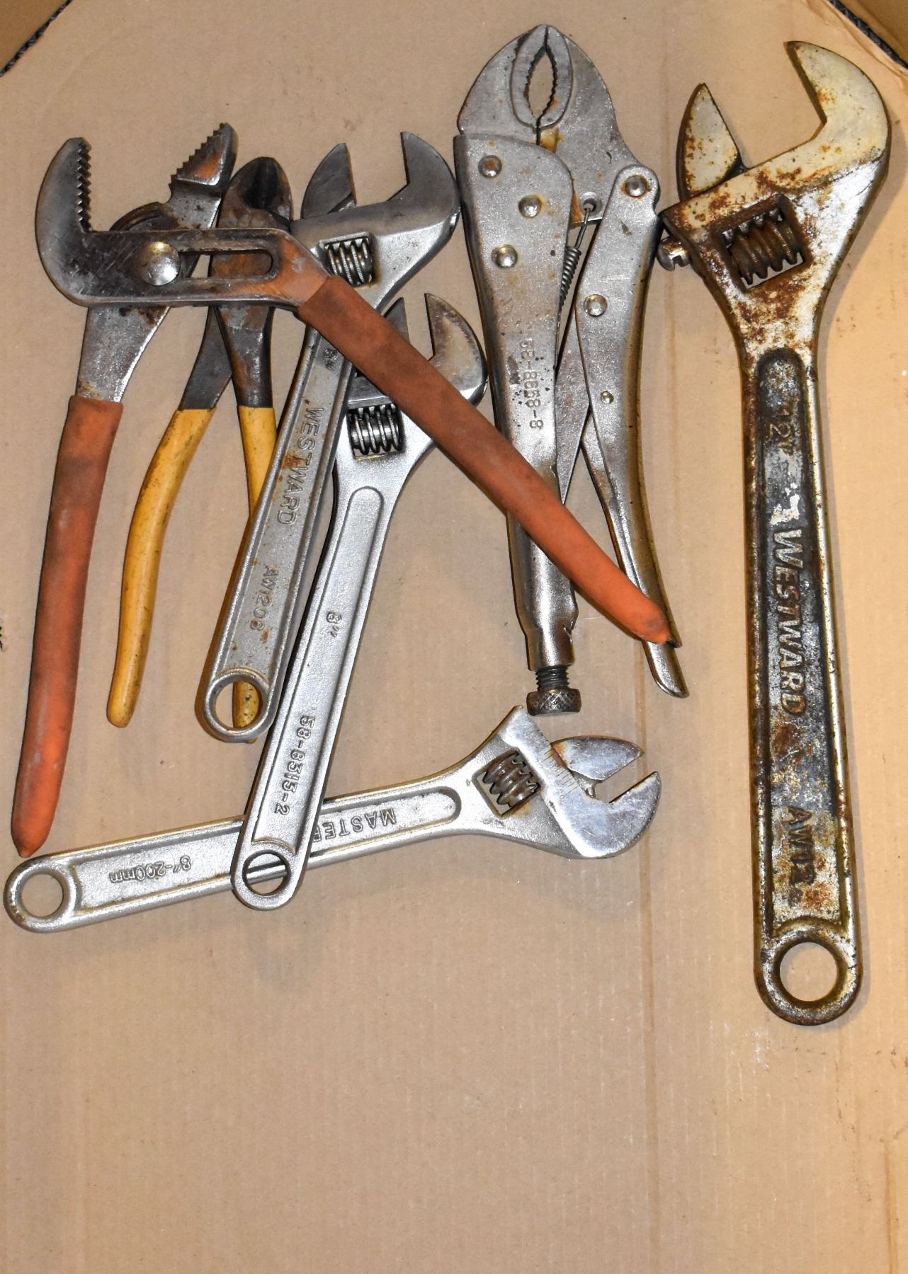 WRENCHES (WESTWARD & MASTERCRAFT), VICE GRIP PLIERS, CHANNEL LOCK PLIERS, WIRE CUTTERS