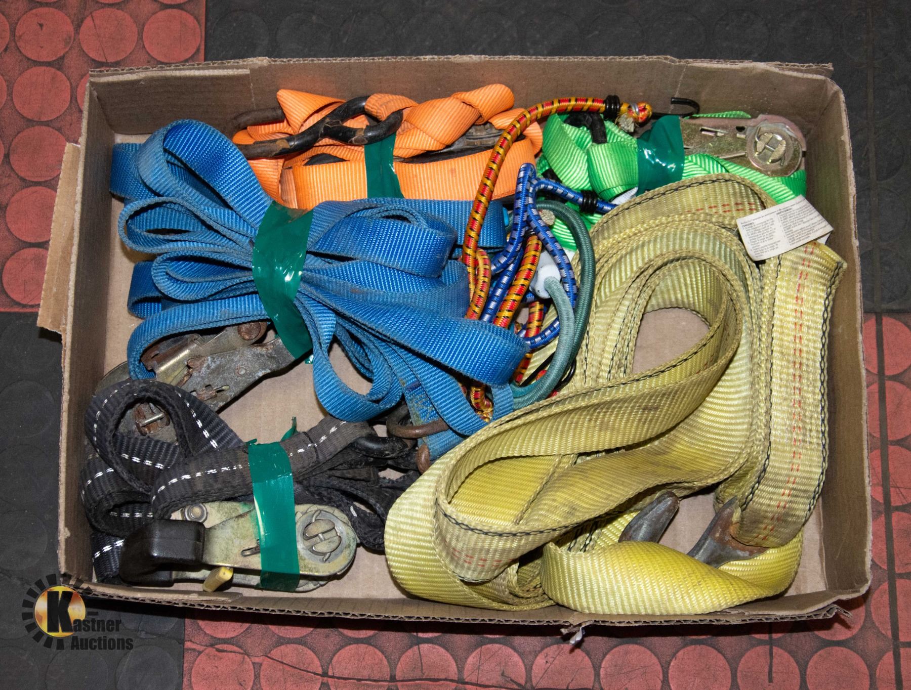 FLAT OF RACHET STRAPS W/TOW ROPE & BUNGEE CORDS