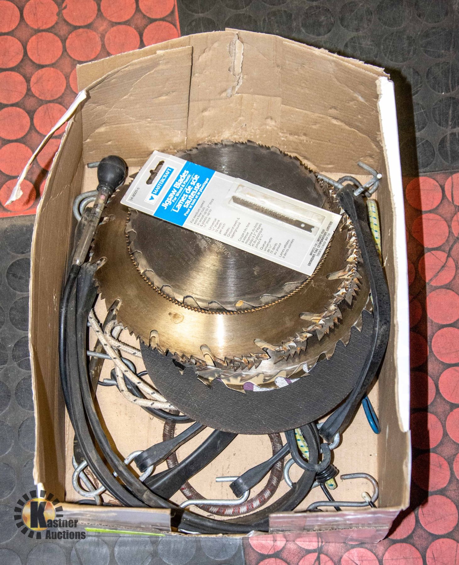FLAT OF SAW BLADES, BUNGIE CABLES & MORE
