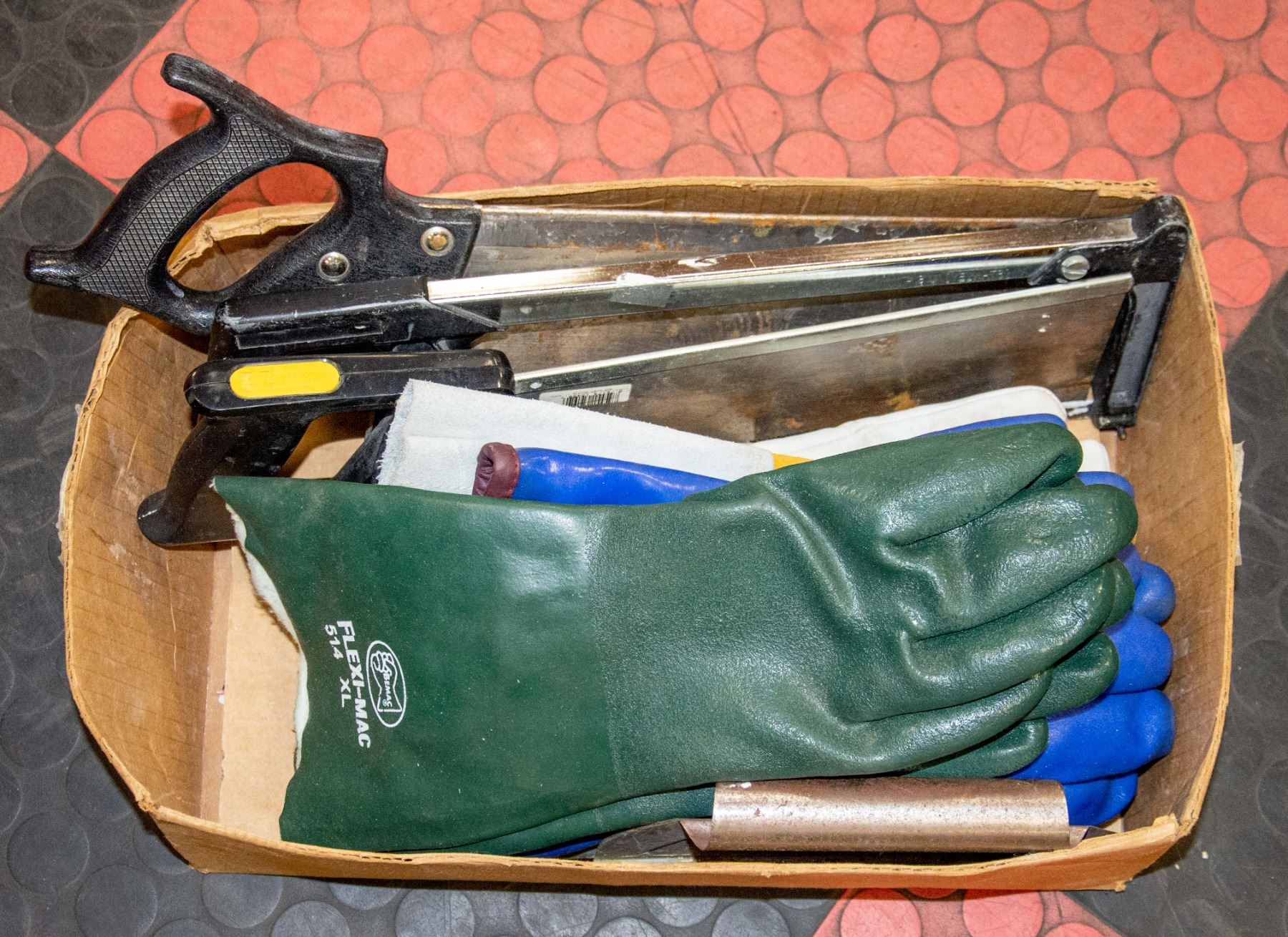 FLAT OF SAWS AND 4 PAIRS OF GLOVES