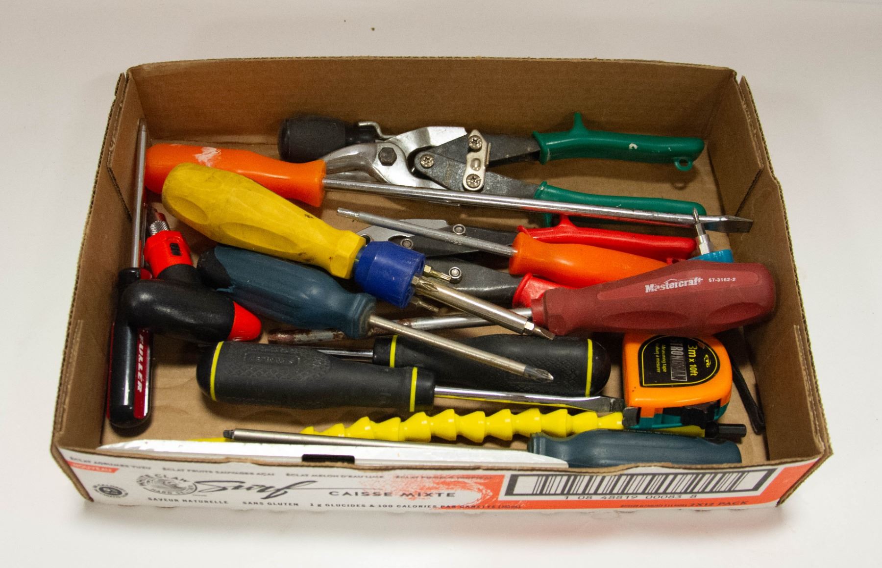 FLAT OF SCREWDRIVERS AND SNIPS AND MISC