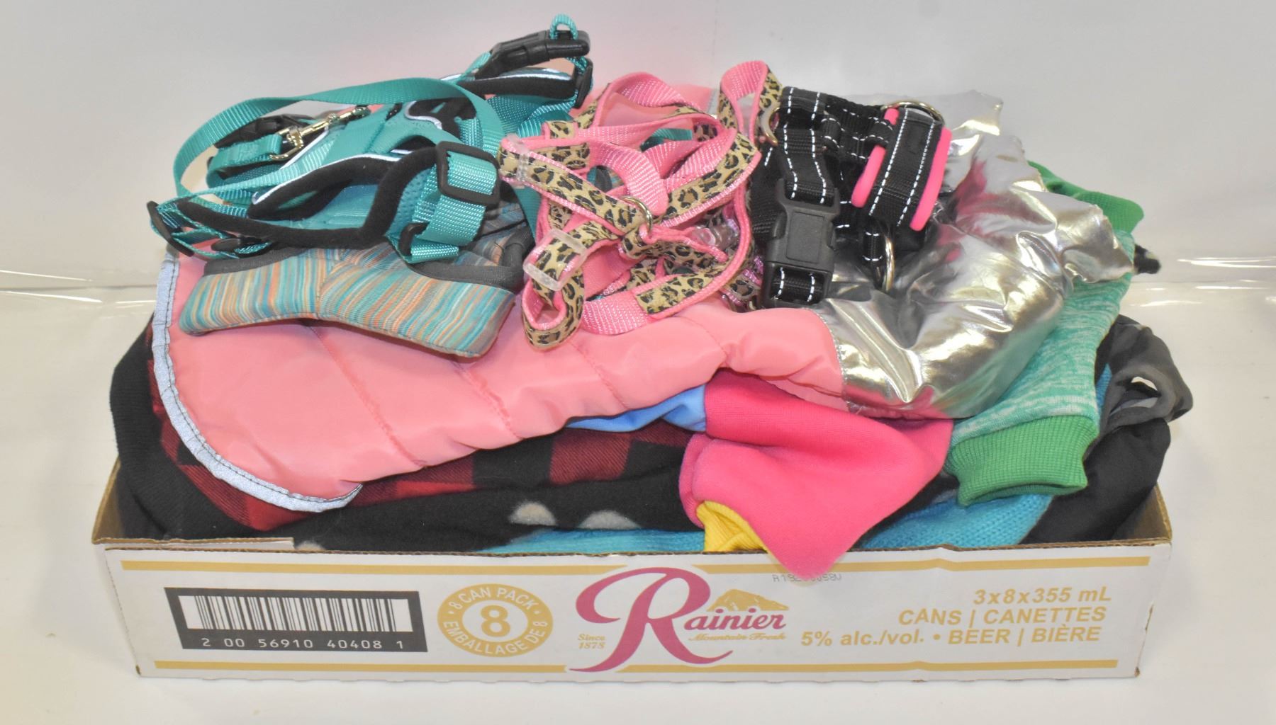 FLAT OF SMALL DOG CLOTHING HARNESS ETC